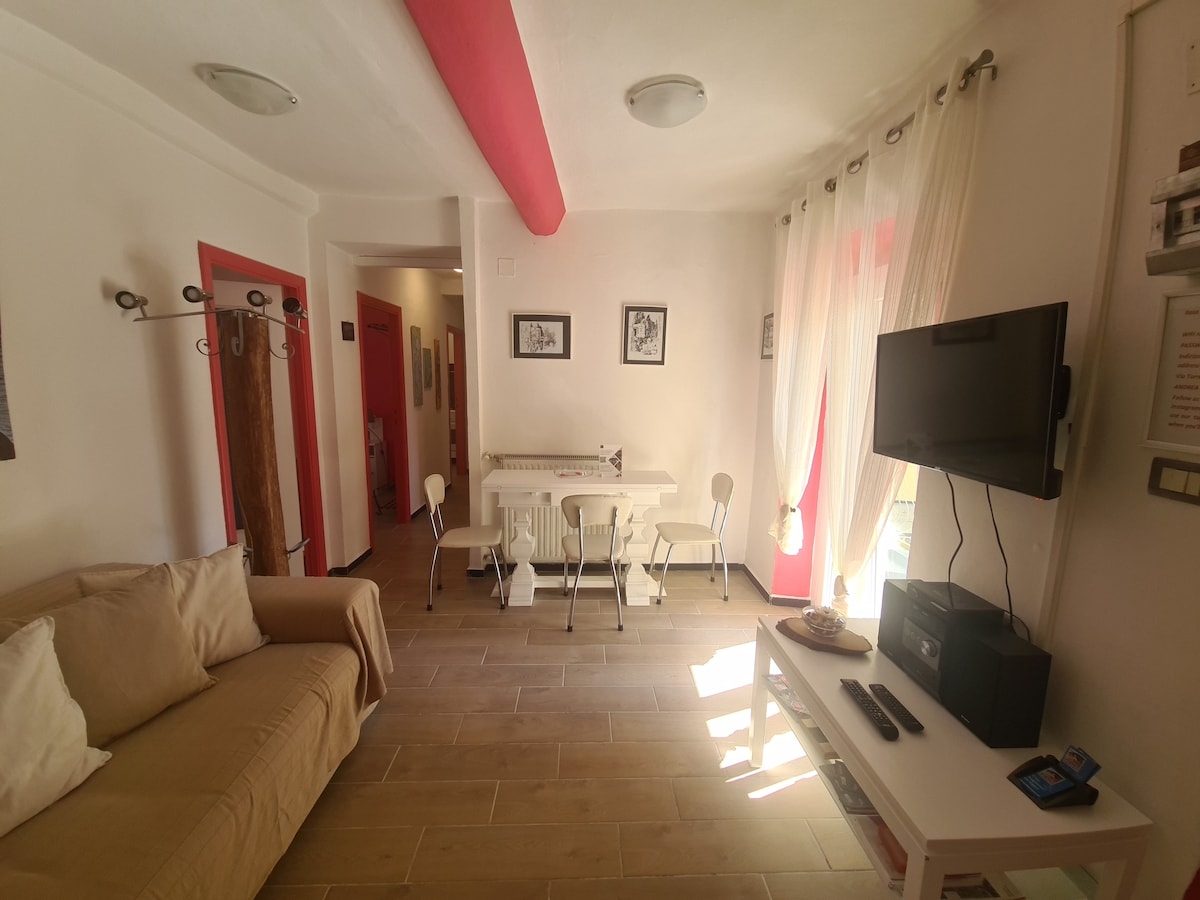 The 50 sqm apartment, completely renovated, has fast WiFi, air conditioning and independent heating, kitchen with dishwasher and washing machine, microwave. Living room with sofa bed, flat screen TV. Double bedroom (total of 4 beds). It has two livable balconies. Very central, it is located 100 m from the train and bus station and 200 m from the sea promenade. Next to the entrance door is a supermarket open 24 hours a day all week