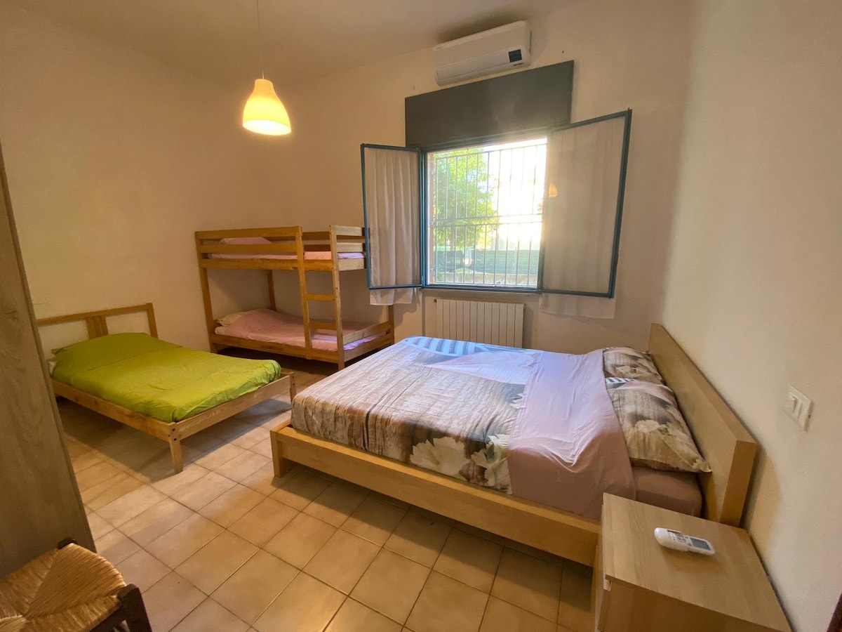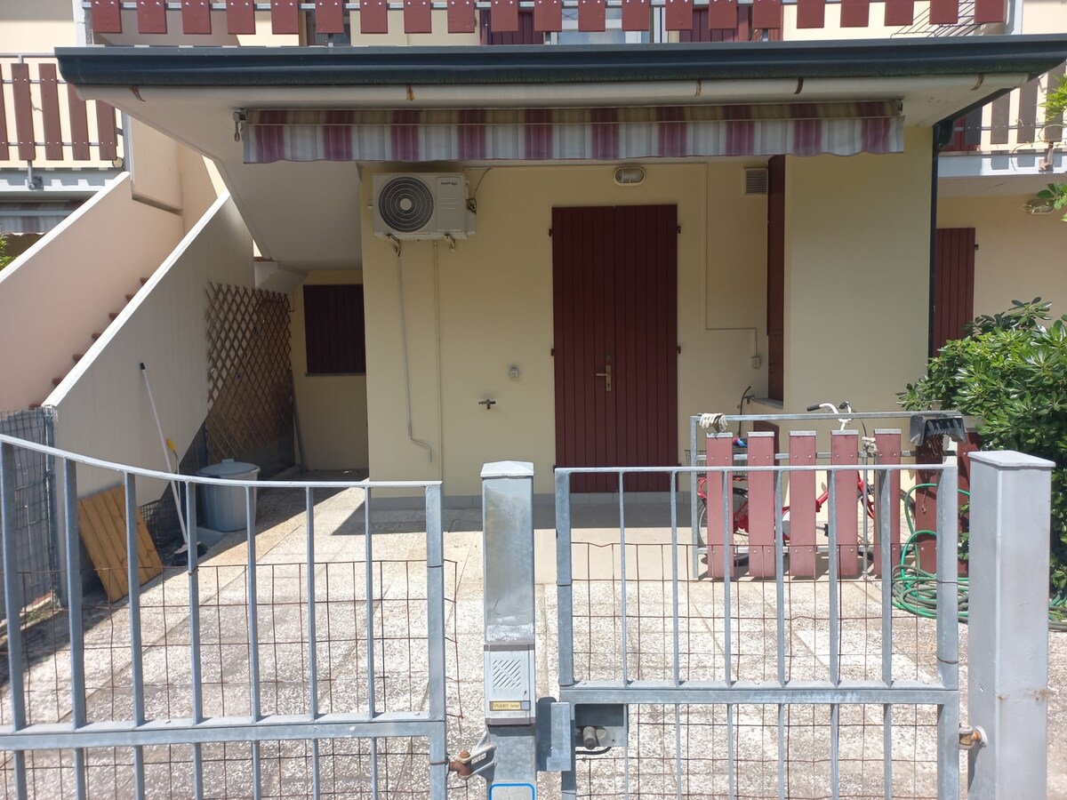 Typical Marina Romea house. The white, walnut and terracotta inside harmonize with the green of the garden, where there is a table under the pergola, chairs and lounge chairs. Backyard/parking spot in front. Guests can enjoy a shared barbecue area. The living room with fireplace can be divided by sliding door into two rooms, each with a single bed. Kitchenette and windowed bathroom. Hot/cold split. In the garden there is a dog kennel and a dogitter service is activated.