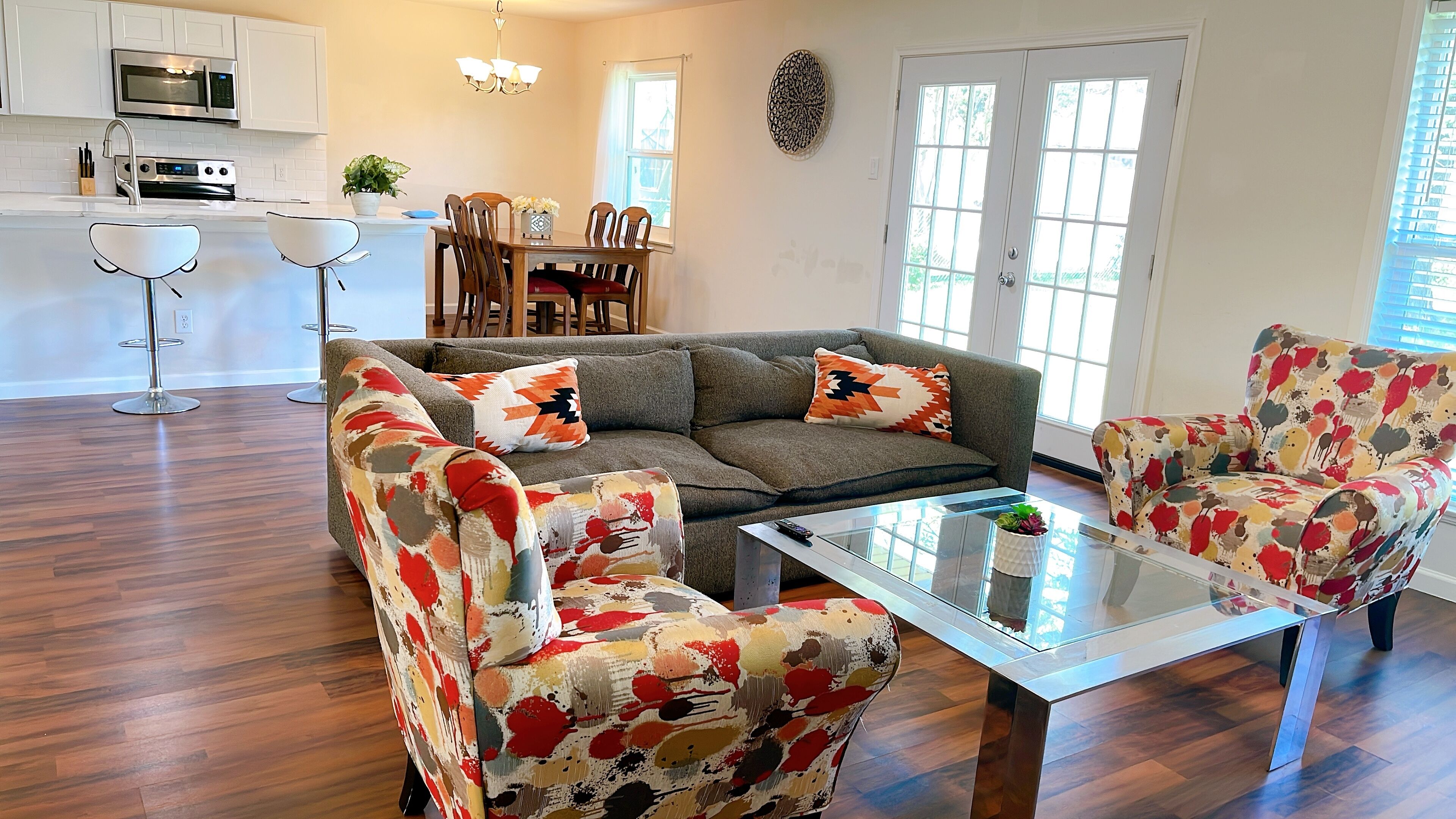 Large living area with a number of spots for you to hang outside the room, as well as in the backyard.