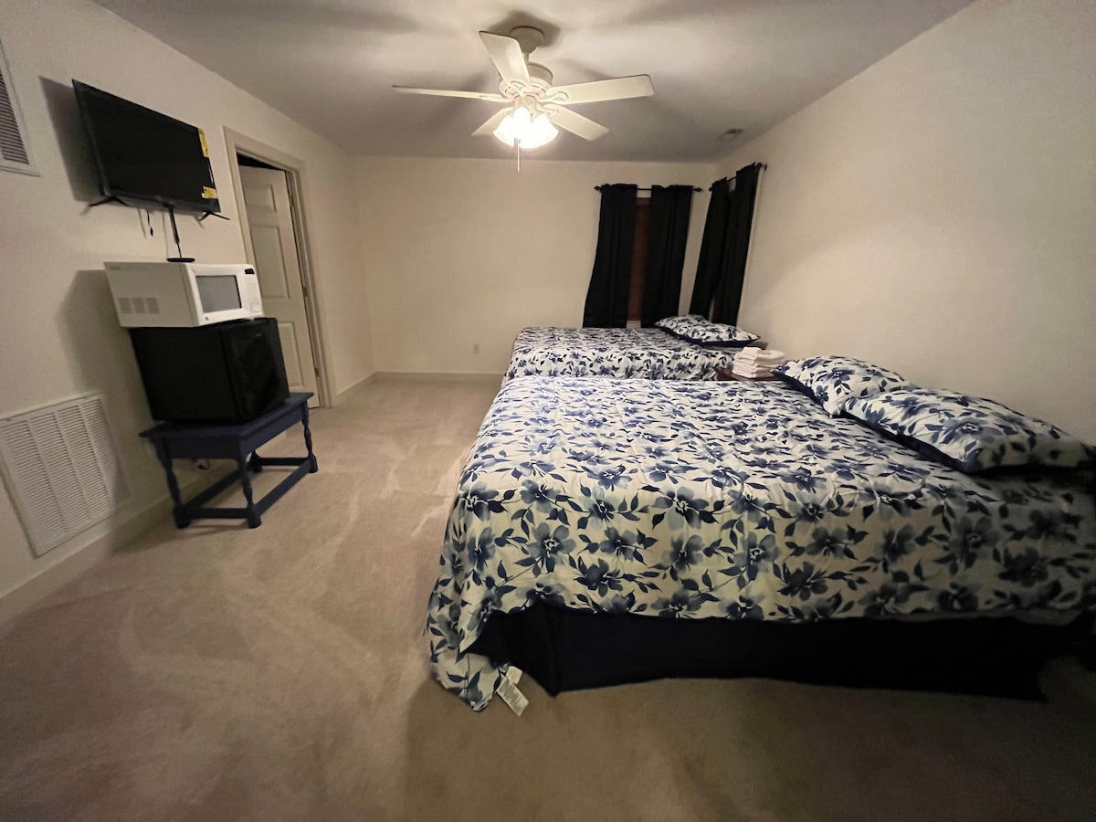 The bedrooms offer Queen Size Brass beds, 55 inch flat screen televisions with RokuTV, Netflix,& additional channels.