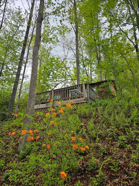 Unplug in our Appalachian "Eden" glamping 200 sq ft treehouse like cabin, attached to our residence's back deck. Furnished to make simple meals on hot plate or grill. 5" clearance needed, not 4WD. NOT suitable for motorcycles. 2 mi from paved road. 1.2 mi of uneven gravel/dirt with potholes.(Venomous snakes/wild animals are indigenous to our area. No charging EV batteries) Use ONLY our directions to enjoy the ride in!