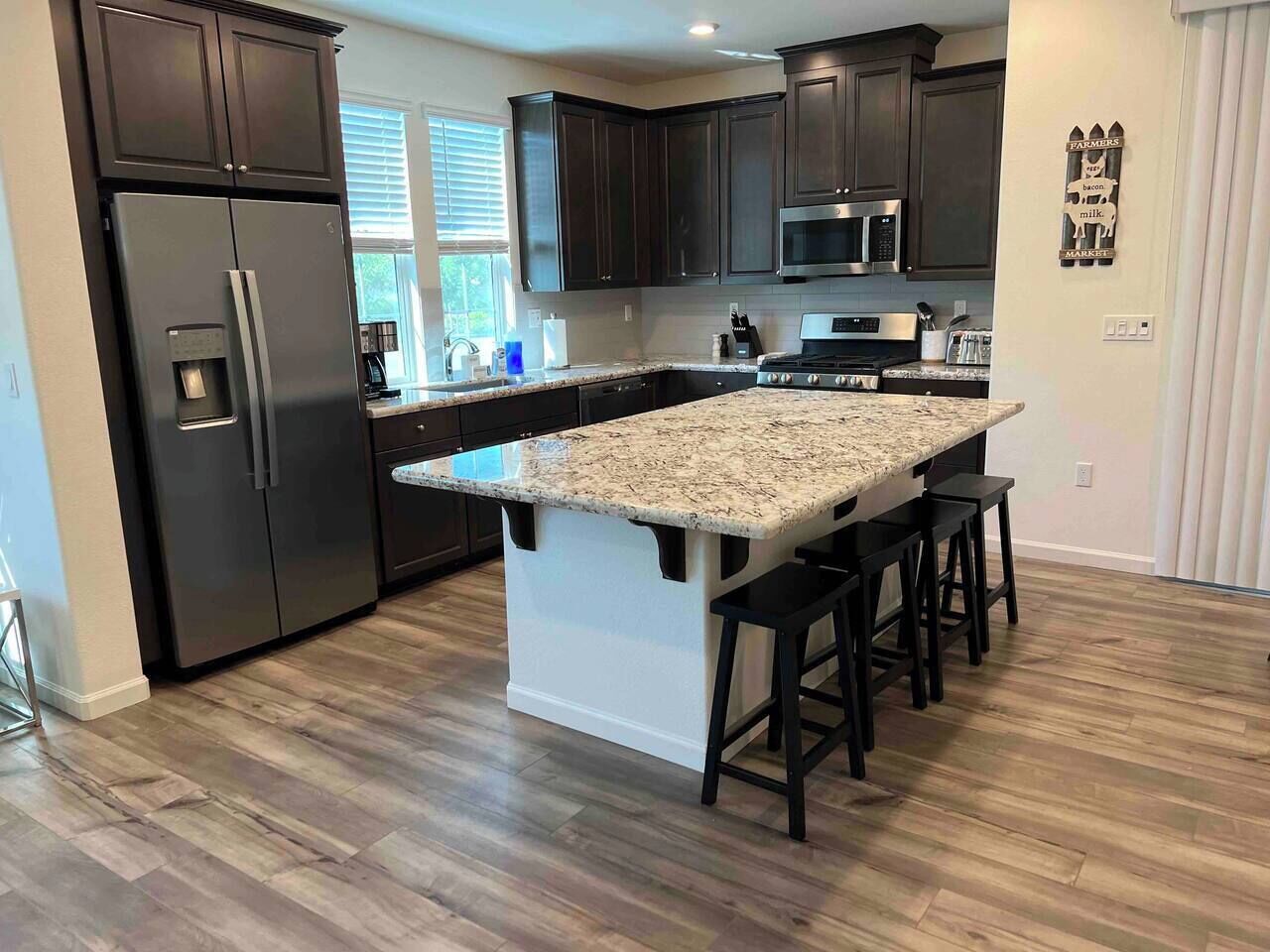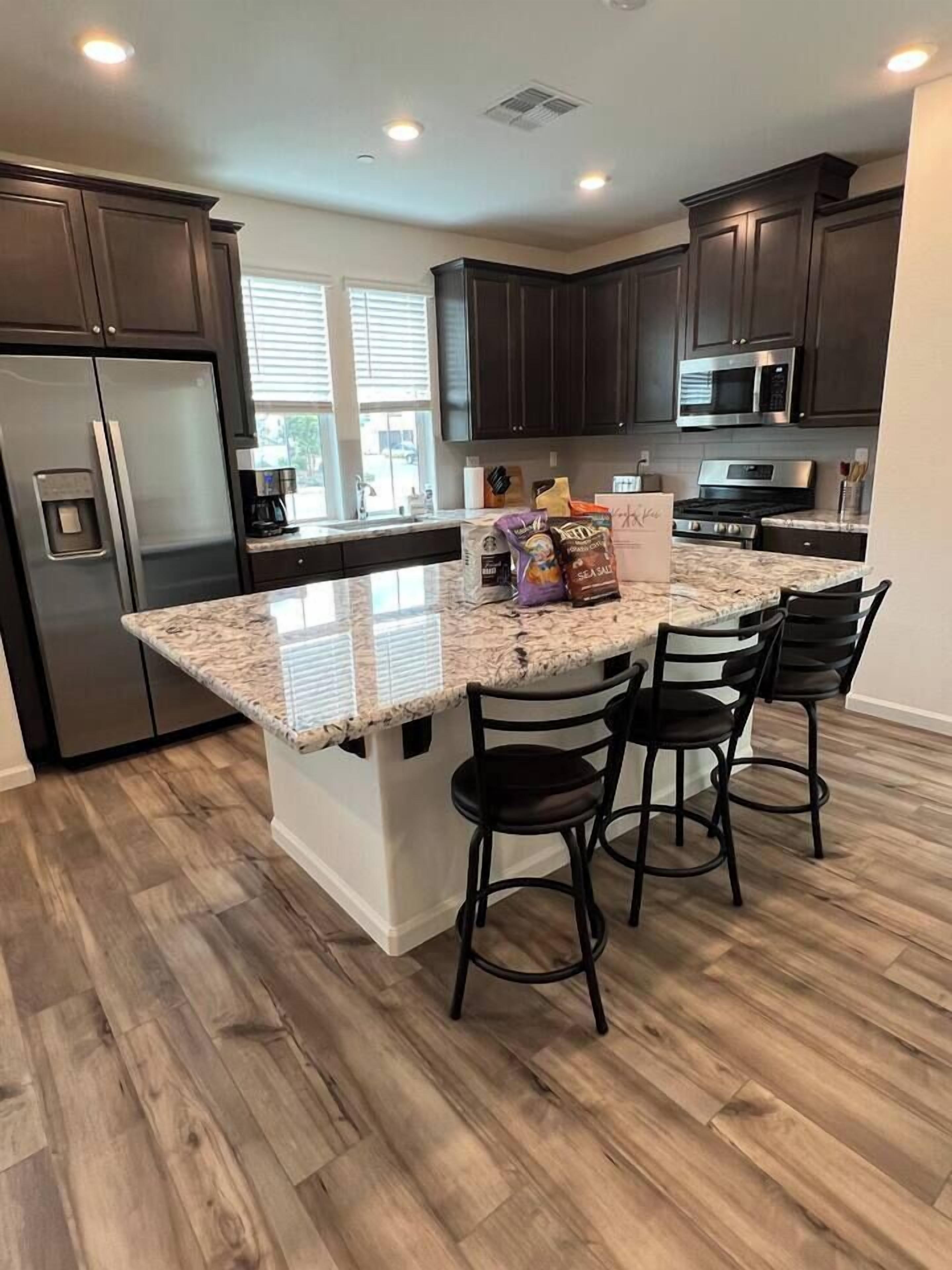 The HOME itself is set up to be a relaxing place for everyone to enjoy. 3 bedrooms with comfortable pillow top mattresses, 2 bathrooms, a large kitchen with utensils and tools to cook all your meals if you wish, an open dining room, and a cozy living room with plenty of seating. The house was recently REMODELED with the new Paint and Flooring, and all the furniture is brand new! Parking is on the driveway. The floor plan is an open concept, the living, kitchen and dining area is one spacious area with a view to the back yard garden. Situated 10 mins from Thunder Valley, Galleria Mall and all the other Big Shopping Center like Costco, Walmart and etc. There are plenty of Supermarket like Nugget, Safeway, Walgreen within 5 min driving distance. This newly built home has a full sized, fully stocked kitchen and furnished comfortable living space. The perfect mix of privacy and convenience, especially for large groups.