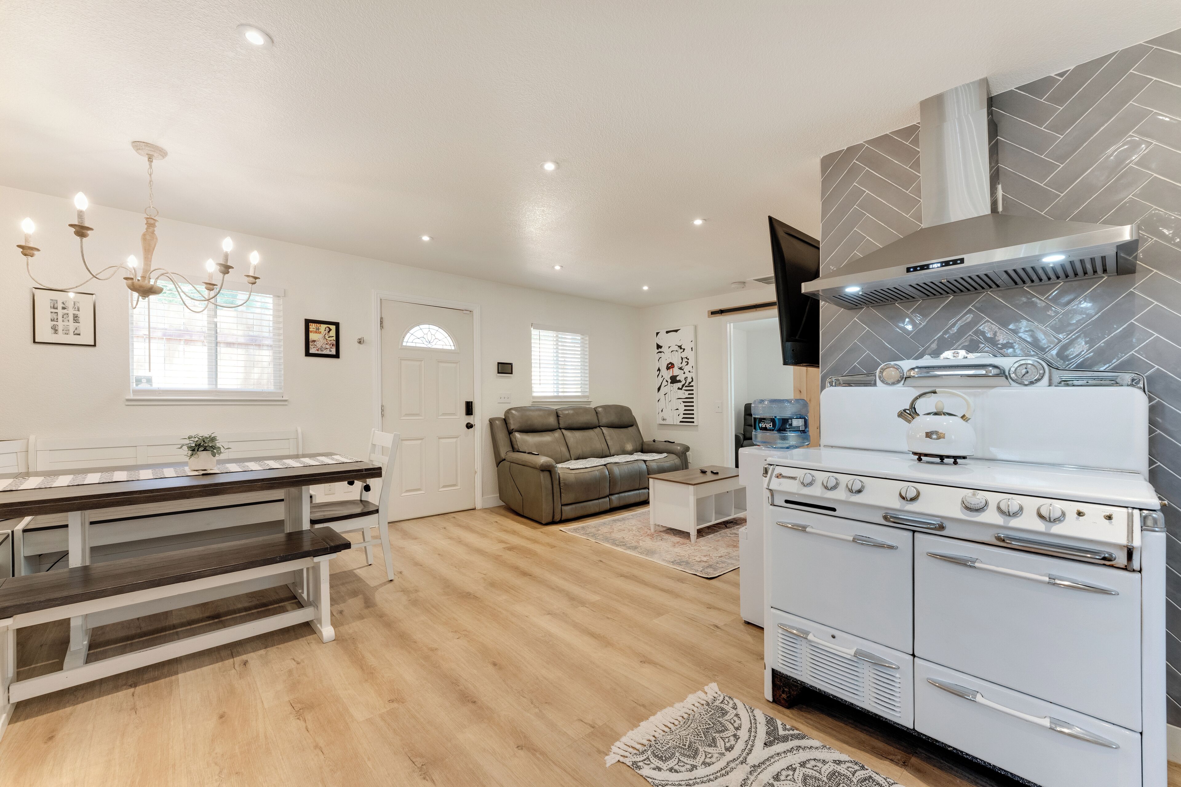 The recently remodeled interior showcases a brand new, modern design that exudes elegance and comfort. The spacious living area is fully furnished with tasteful decor, providing a welcoming atmosphere to unwind after a long day. Whether you're lounging on the cozy sofa or enjoying a movie night on the 65 inch flat screen tv, this space offers a perfect blend of relaxation and entertainment.