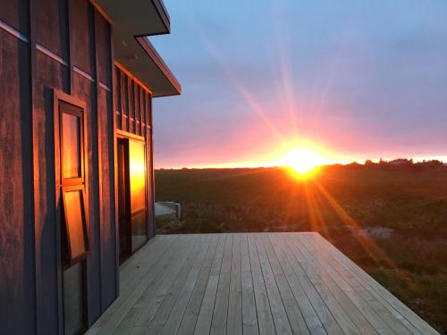 This studio apartment is situated on a sunny hillside and has the perfect view of the ocean waves nearby. It is close to town (5 minute drive away) and yet has a relaxing country outlook. The apartment is new and modern and has all that is needed for a cozy stay. It has plenty of space for living and has an easy indoor-outdoor flow with a private deck outside with outdoor furniture ready to be used. The apartment is ajoined to a house.