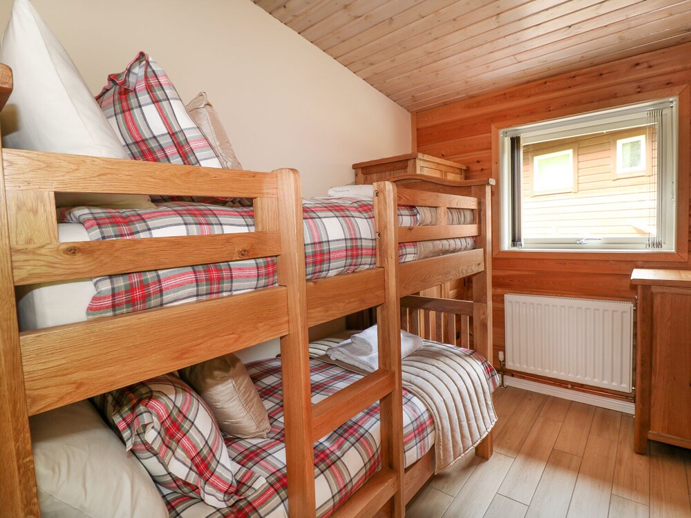 The Sheiling consists of a kitchen/diner with electric oven and hob, microwave, fridge/freezer, washing machine, dishwasher, dining seating, and a sitting room with TV and woodburning stove. The bedrooms each have a TV and consist of a ground-floor double, ground-floor twin, and king-size with free-standing bath, serviced by a shower room and ground-floor shower room. Off-road parking for three cars. Non-enclosed, multi-level patio with furniture, hot tub, outdoor shower, barbecue, and shed with storage. Two highchairs and travel cot available. Two well-behaved pets welcome (more considered upon request). Shop 3.1 miles, pub 3.6 miles, lake 0.1 miles. Sorry, no smoking. WiFi, fuel, power, bed linen, and towels included in the rent. Make an unforgettable holiday to Staffordshire with a stay at The Sheiling. Note: Non-enclosed access to lake, please take care. Please note - This property requires a minimum of 3 night bookings, during school holidays only 7 night bookings are accepted.