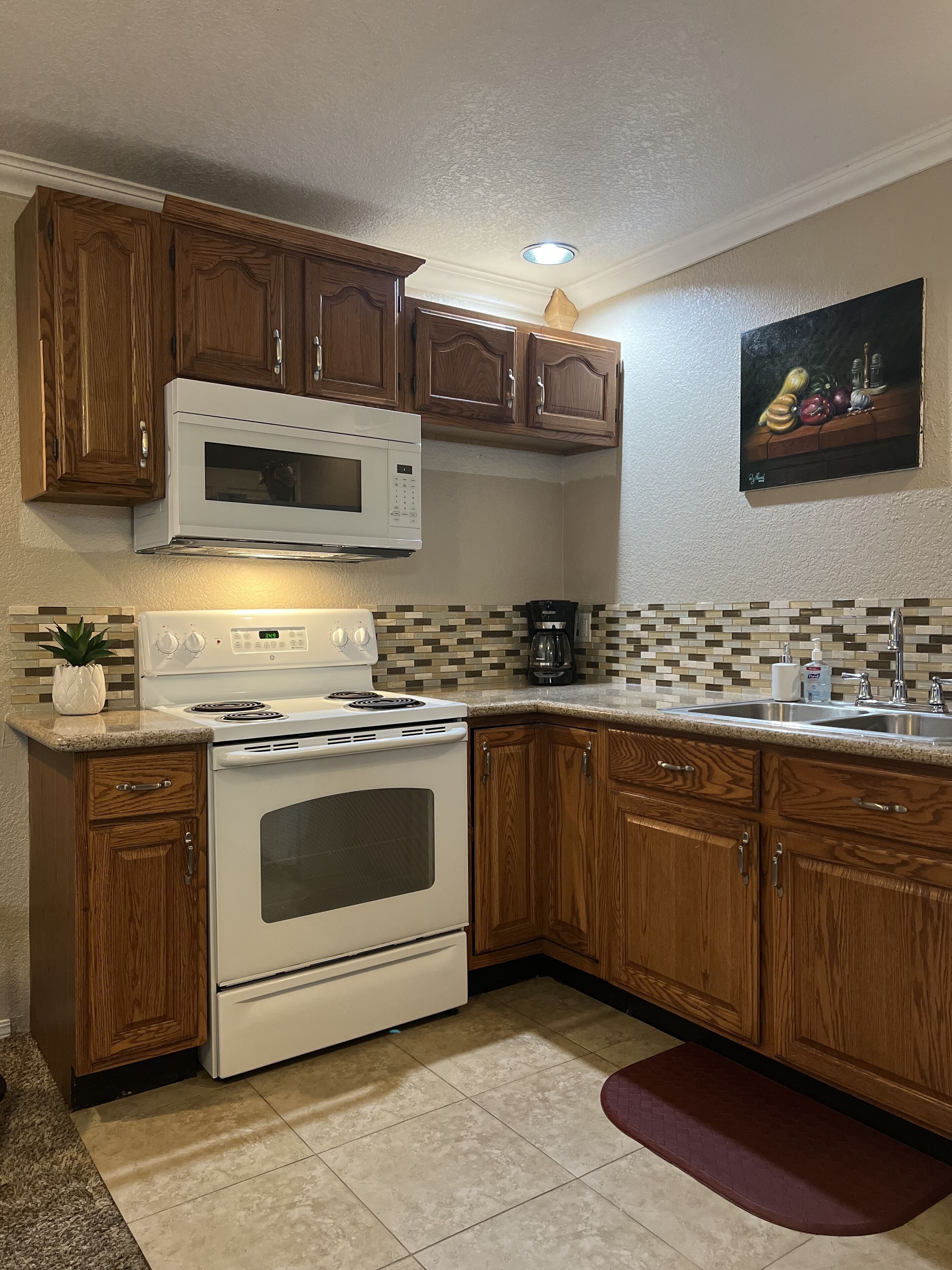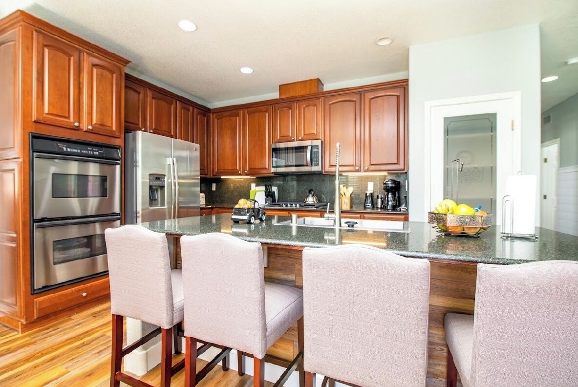 KITCHEN: Fully equipped w/ granite counters, breakfast bar, Keurig coffee maker, stainless steel appliances, toaster, cooking basics, knife set