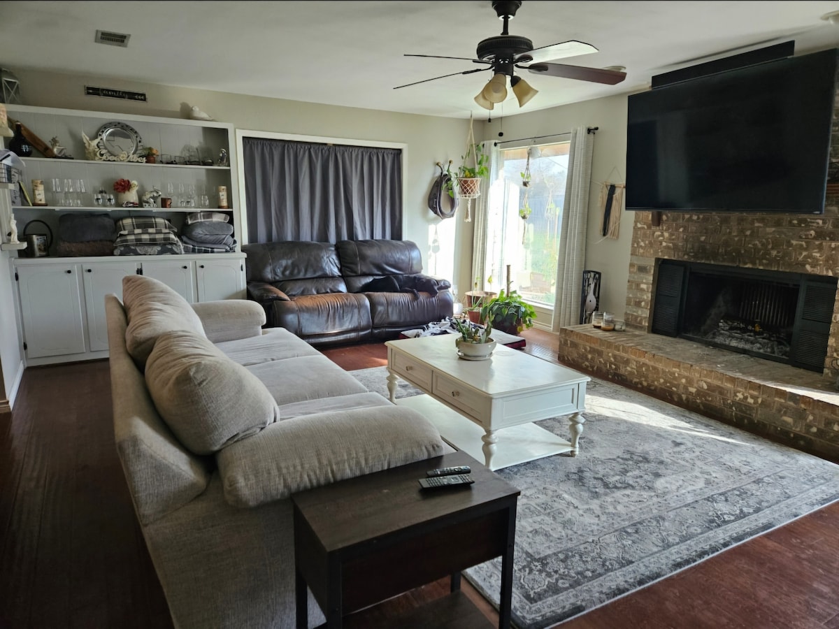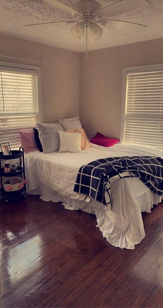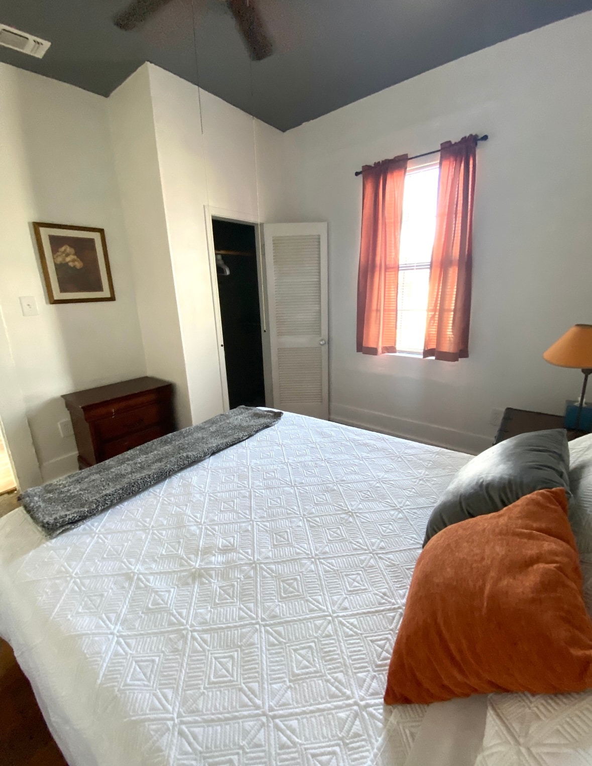 This is the perfect stay for long term rentals. Close to downtown with many food options nearby. Kitchen is stocked with cooking utensils and beds are so comfy you’ll sleep like a rock! The driveway is shaded and covered front porch is relaxing in the Texas heat.