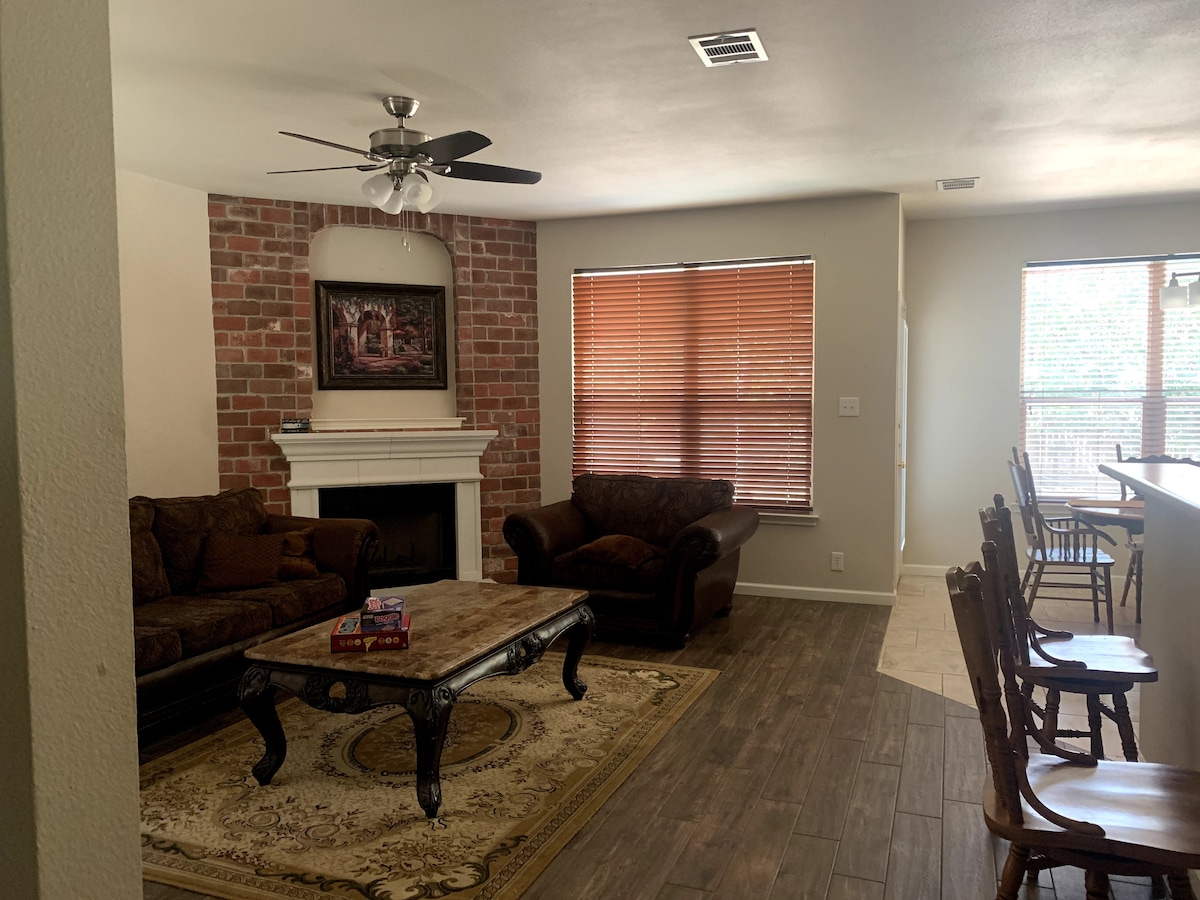 Great room for anyone looking to relax and enjoy their space! 15 mins from downtown and army/military bases. SmartTV with Hulu, Netflix and other streaming, night stands with outlet plugs & charging ports, full wall width closet, extra blankets & towels. Kitchen fully stocked with all cooking utensils, coffee pods & kureg stocked for guests, air fryer and other appliances available! Kitchen is spacious more than welcome to use! Washer & dryer on-site as well! House is set for guests to un-wind
