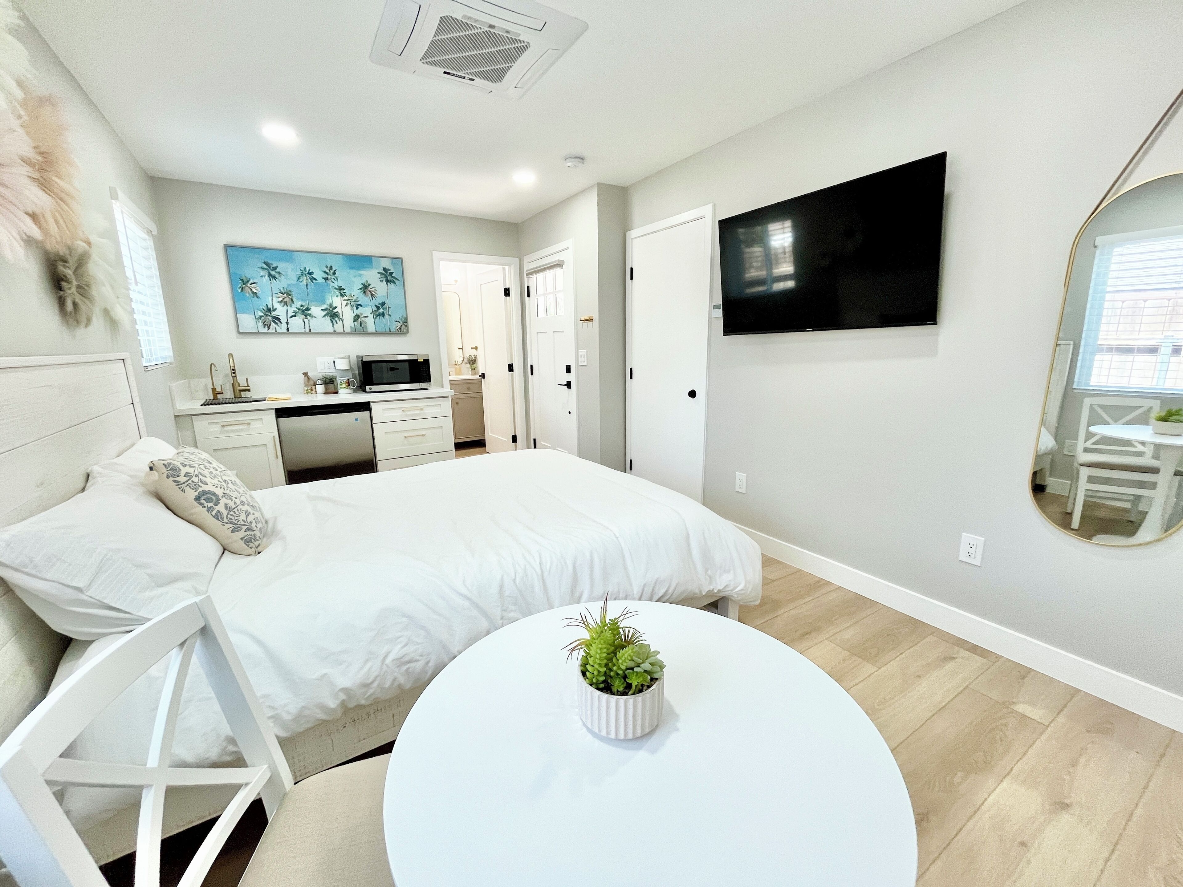 Long-term reservation only. Must be 31 day plus for the first reservation. This is a beautiful well appointed junior suite with Refrigerator, attached bathroom and TV all included in a hotel style five star room!