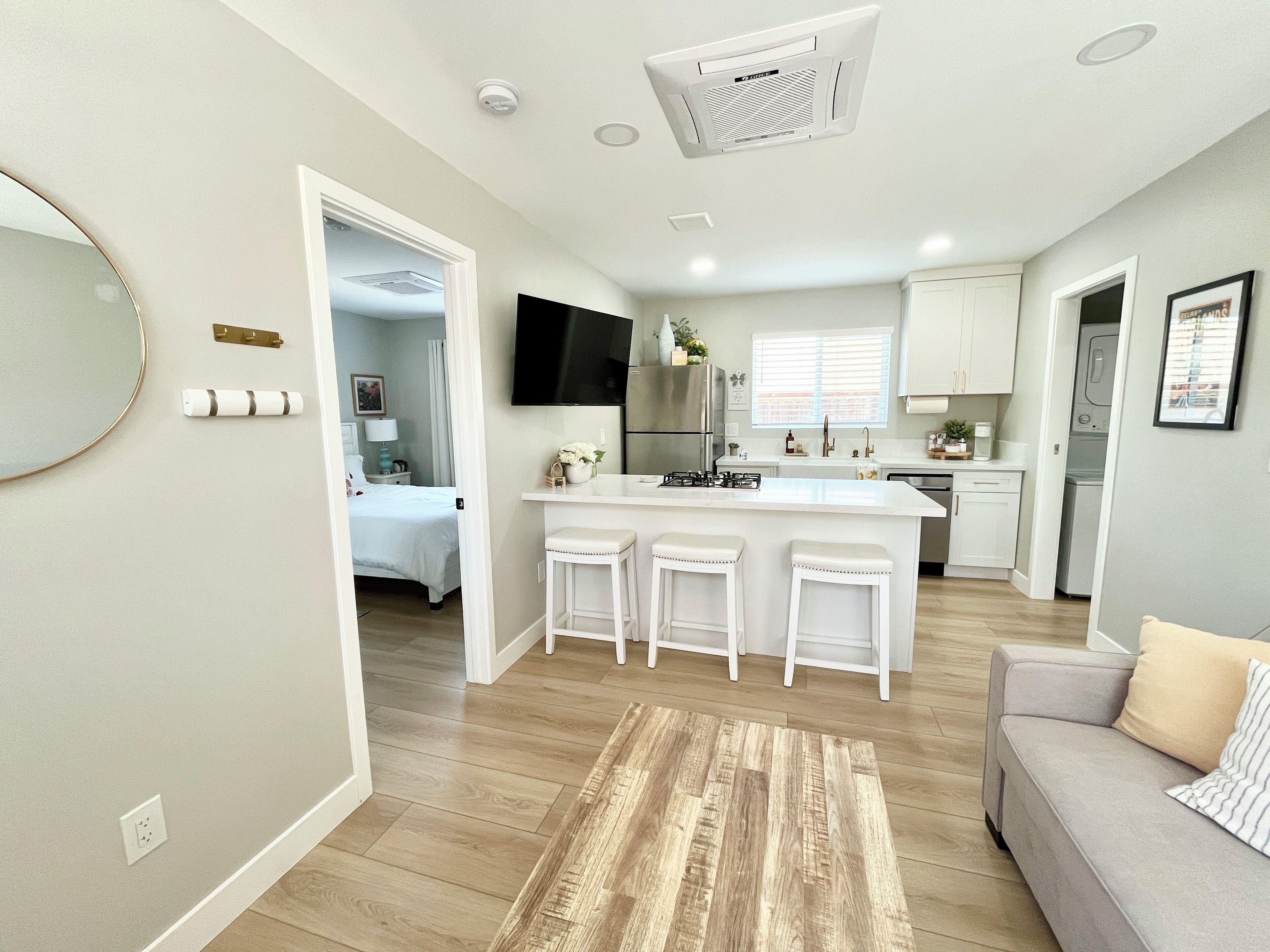 Discover the beauty of Redlands from this private 1-bedroom 1-bath with separate entrance in a Guesthouse. This perfect retreat features a cozy living room with a sofa bed, ideal for unwinding after a day of exploring. Guests can enjoy the serene atmosphere and modern amenities like WiFi and AC. The bedroom offers a comfortable queen bed for a restful night's sleep. With a convenient location and excellent facilities, this apartment is the perfect choice for your getaway. We look forward to welcoming you to our place.