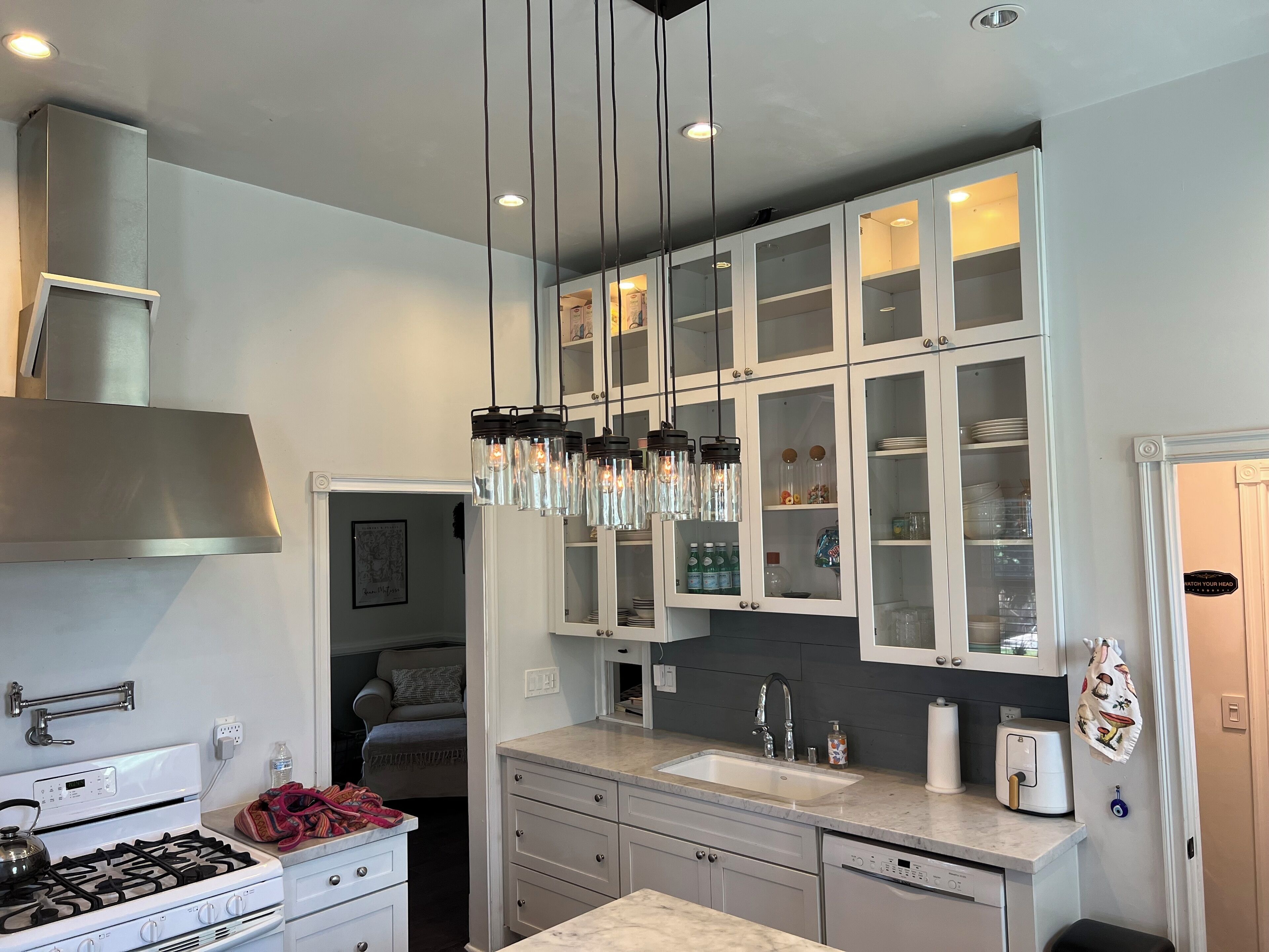 And there are security cameras facing the driveway, front door, backyard, kitchen , the hall upstairs and the living room. They are on during your stay for your safety