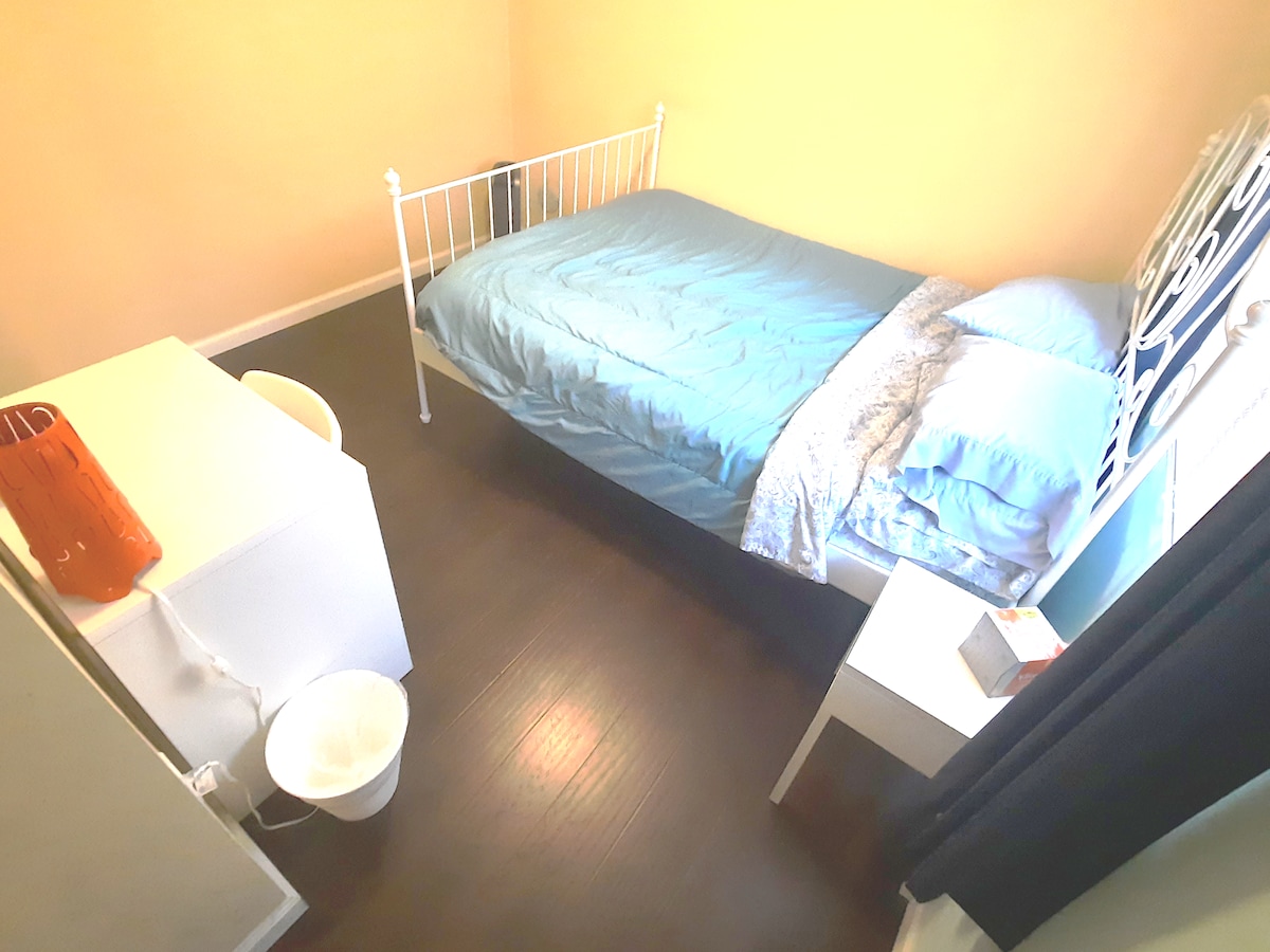 Your have your own room with a lock, a desk, a couch and a double door closet. Full size bed.