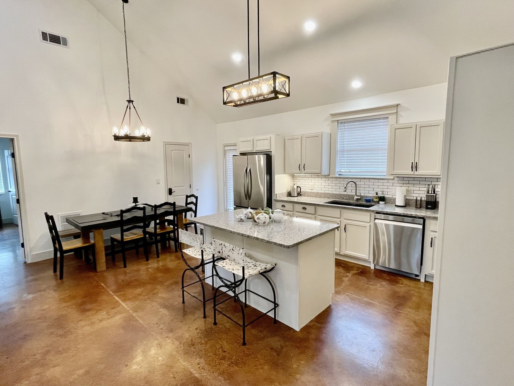 We want to make sure you feel welcomed and refreshed throughout your stay. To that end, we offer a variety of amenities, such as a hair dryer, walk-in shower in the master bedroom, shampoo, conditioner, and body wash, iron, dining table, air fryer, coffee machine, French press, dishwasher, microwave, stove, refrigerator, washer and dryer (with detergent provided), dedicated workspace in all rooms, high-speed Wi-Fi, and a fully equipped kitchen.