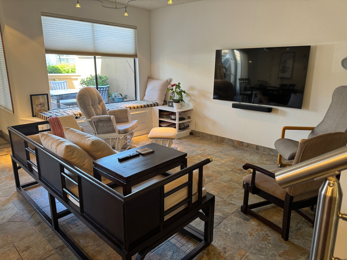 Single-level home on quiet street with parking and easy access. The accommodations are roomy, light and comfy.