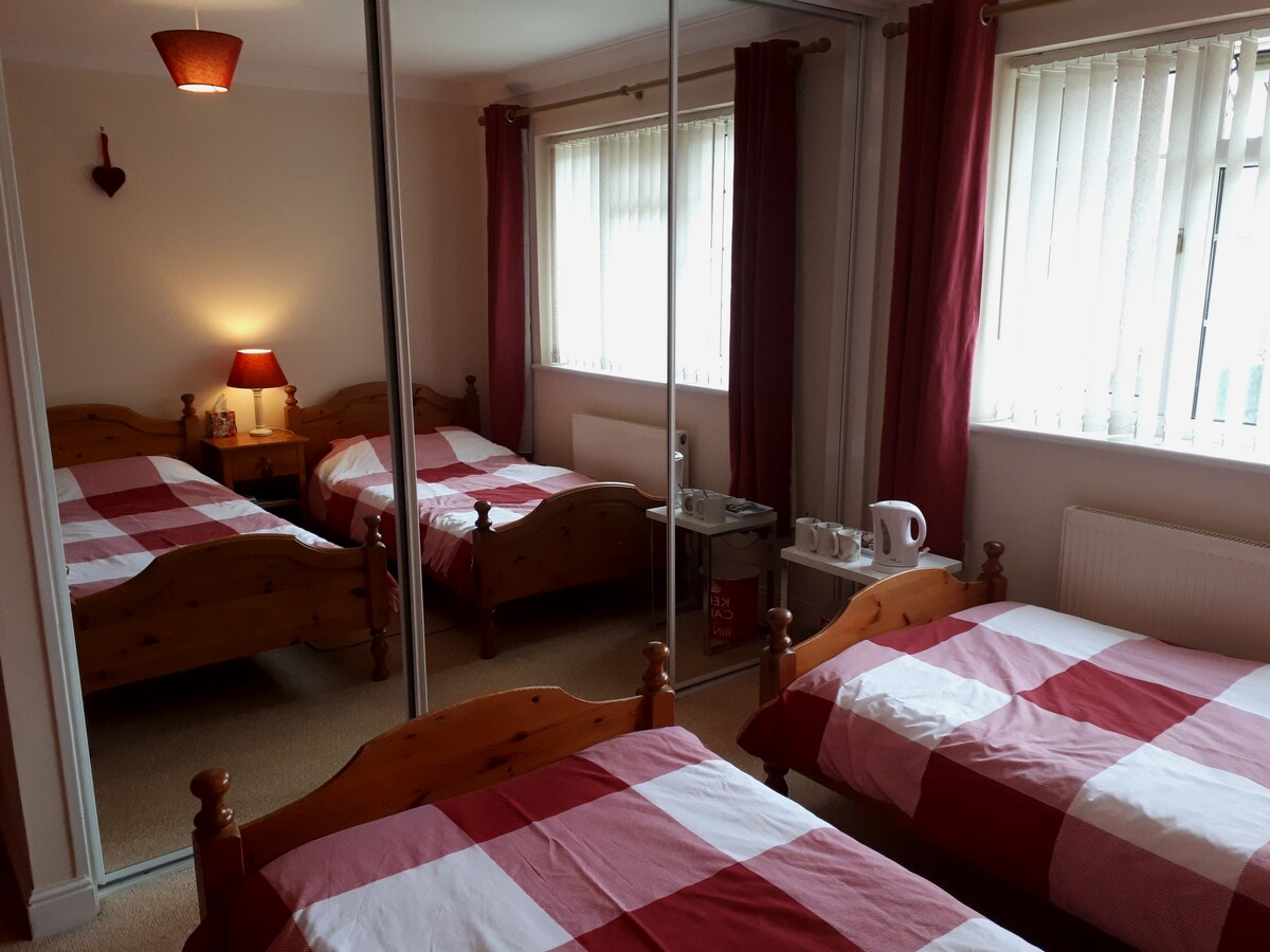 Modern detached house at the end of a quiet cul-de-sac, but close to all local amenities. Comfortable room with two single beds and triple built-in wardrobes. WiFi included. Use of large shed for bicycle storage.