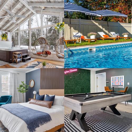 Game Room+Hot Tub+Pool+King Beds+More is a recently renovated vacation home in Gansevoort where guests can make the most of its pool with a view, barbecue facilities, and shared lounge. Built in 1986, the property includes hot tub and fitness room. There's a sun terrace and guests can use free Wifi and free private parking. The air-conditioned vacation home consists of 6 bedrooms, a living room, a fully equipped kitchen with a dishwasher and a coffee machine, and 3 bathrooms with a walk-in shower and a hot tub. A flat-screen TV with streaming services and a game console are featured. There's also a seating area and a fireplace. You can play billiards, table tennis and darts at the vacation home, and the area is popular for skiing and diving. Hiking is possible within the area and Game Room+Hot Tub+Pool+King Beds+More offers ski storage space. Wilton Mall is 4.4 miles from the accommodation, while Hannaford Plaza Shopping Center is 5.1 miles away. Albany International Airport is 32 miles from the property.