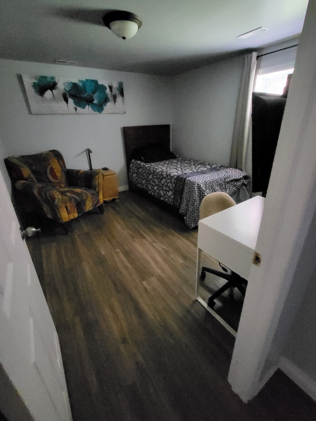 Completely private, this lower level space has a dedicated entrance, private bathroom with laundry facilities, free parking, and is perfect for both short and long term stays. Home is located in quiet North End Sarnia, close to beaches, parks and nature trails. Self check-in available and out of town workers are very welcome!