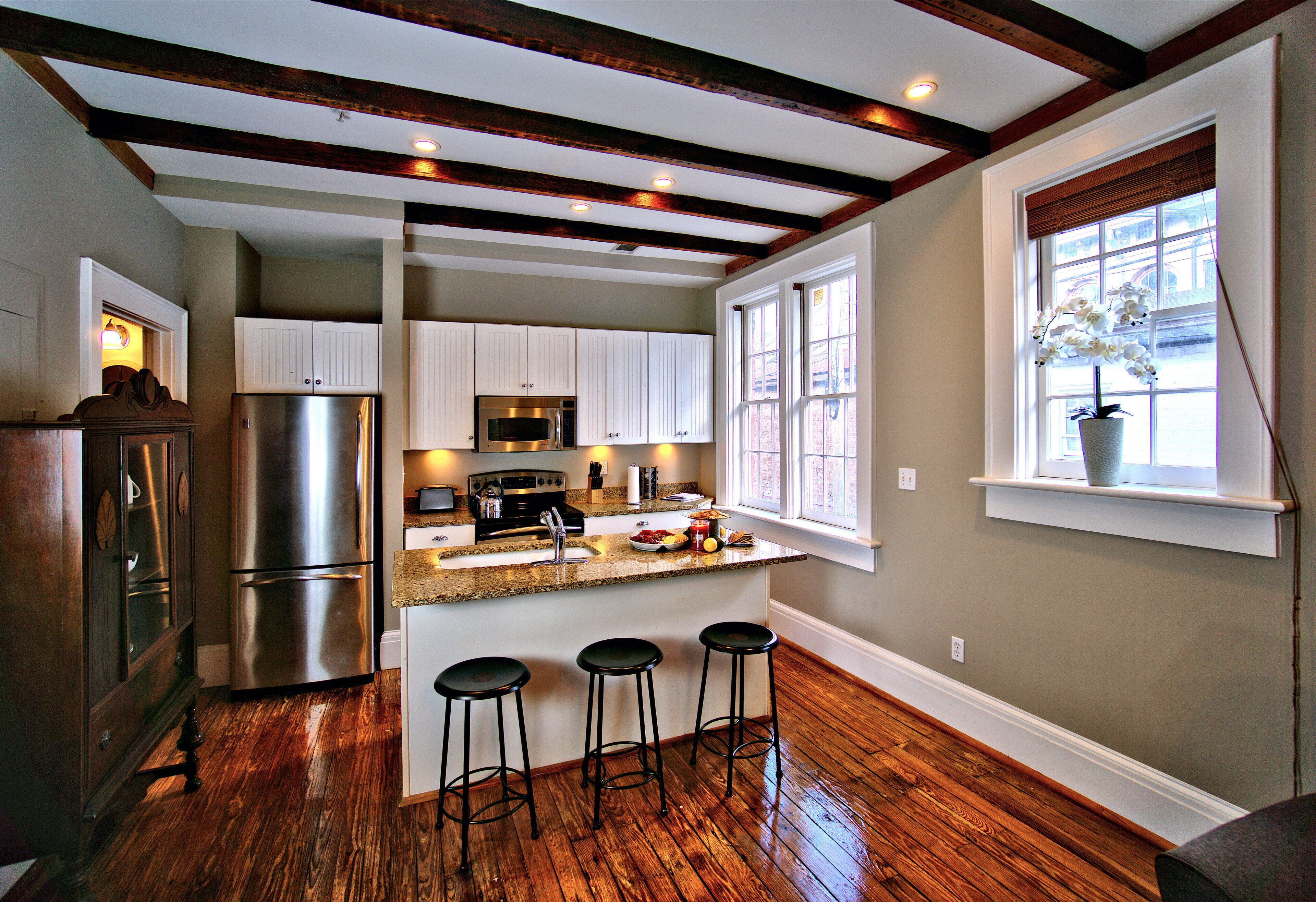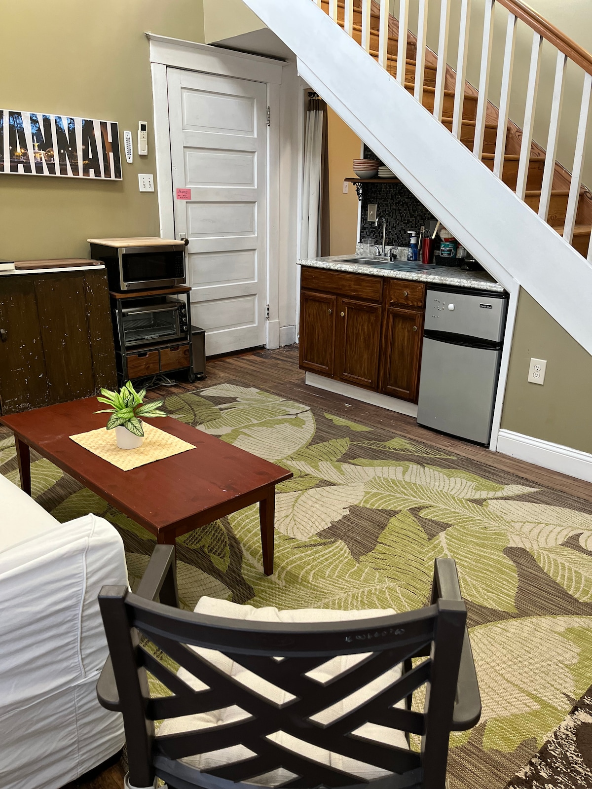 Private upstairs apartment with kitchenette. With so many great restaurants in Savannah, why cook?