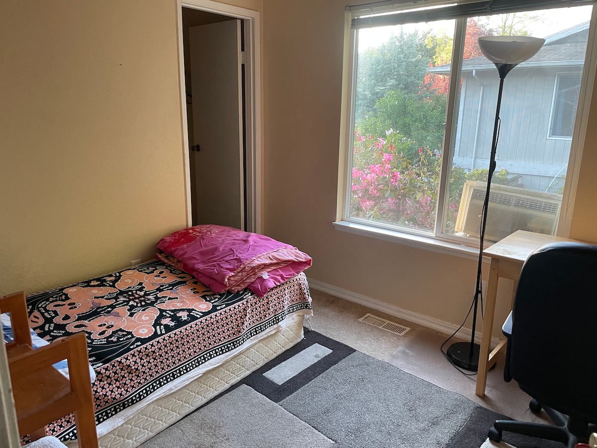 It includes all linens, towels, wifi with passcode provided. Your will enjoy and have the cozy private room with a twin size bed share bath with 1 other room. Share kitchen and microwave.