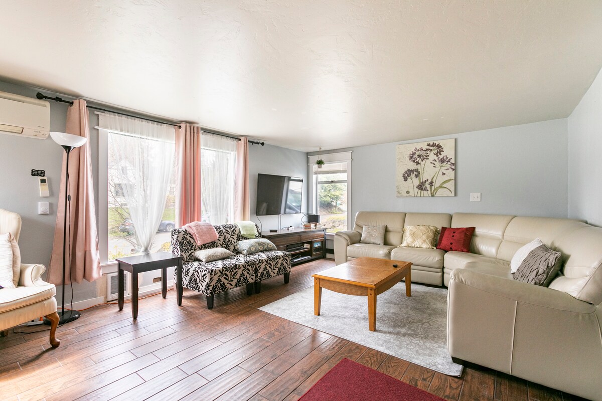 - "Comfortable house in a nice neighborhood. Gas fireplace is a nice touch." - "Beautiful home, comfy and spotless with all the amenities. What a value for the price. Very close to downtown and an easy 10 minute UBER. A visitors guide, hand written note, bottle of win and snacks were on the table when we arrived. The hostess text a map and checked in on us along the way. They were immediately responsive when we needed something. Safe neighborhood, speedy WIFI, fireplace...we highly recommend it. "