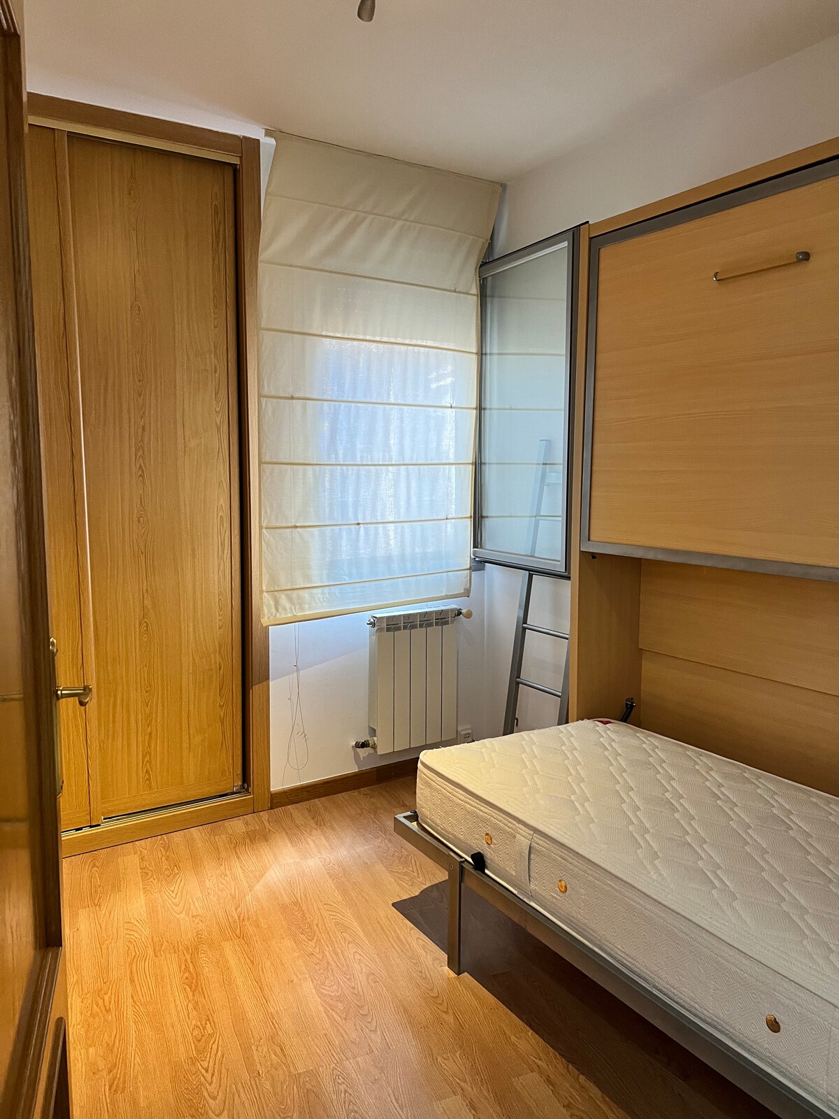Private room on shared floor, located on a 3rd floor without elevator ,with lock , air conditioning and 135 cm bed for two very cozy less than 3 min walk from the aqueduct and the campus ( UVA ) María zambrano de segovia.