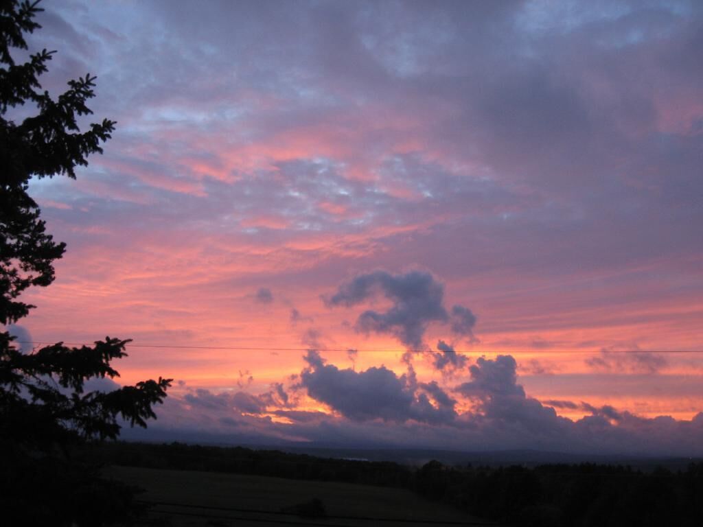 Large lot under the trees, view of the fields, the Orford mountains and the sunsets