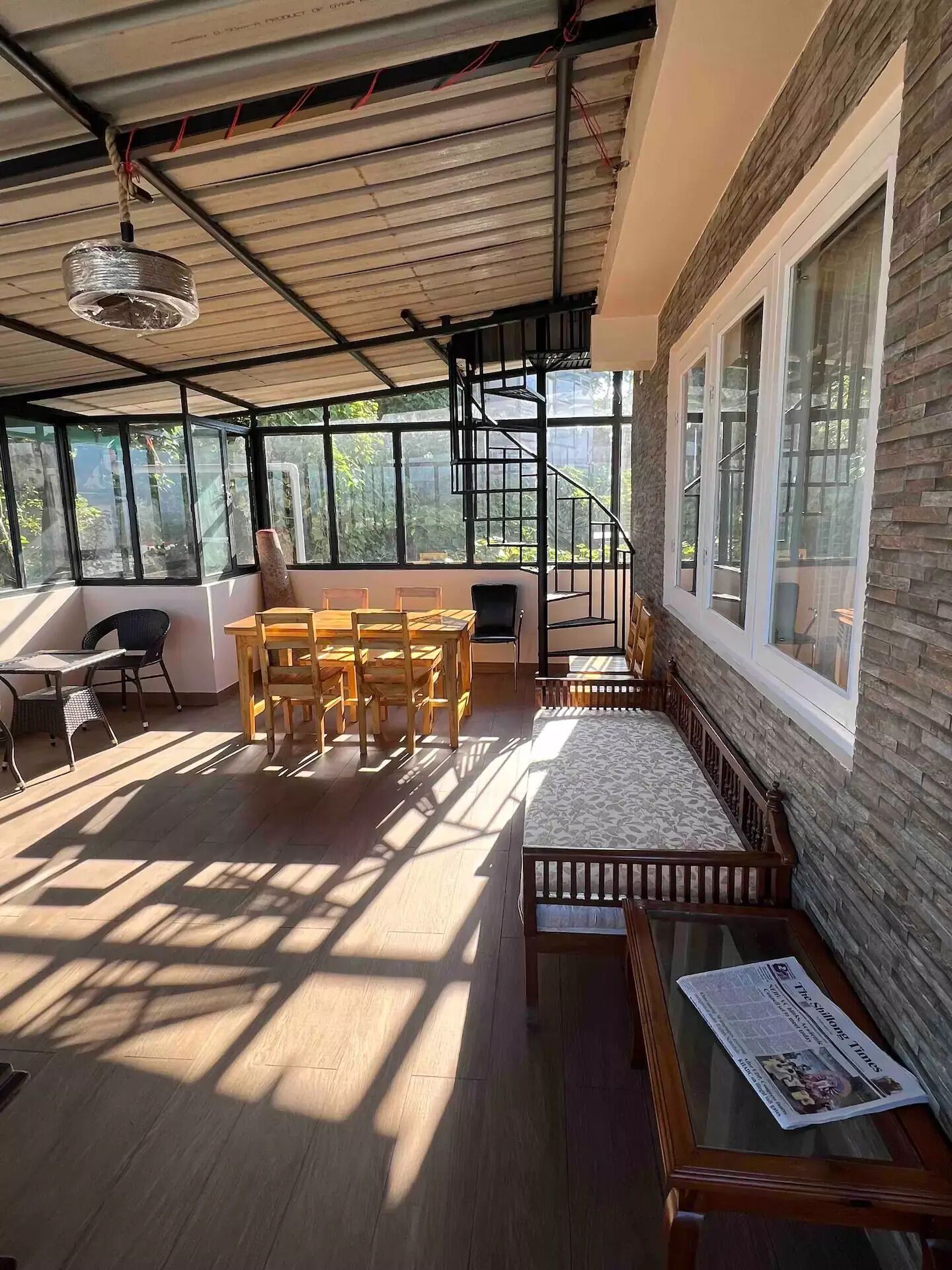 If you're looking for a place close to the main city and also crave to be amidst the sights and sounds of nature, this is the perfect place for you. It is located in a residential neighbourhood around 20 to 30 minutes away from the city centre, Police Bazaar. Kindly note that there is another building undergoing construction just next to the homestay, however it does not affect the balcony view. The homestay building is located behind the family house. A small path leads to the back.