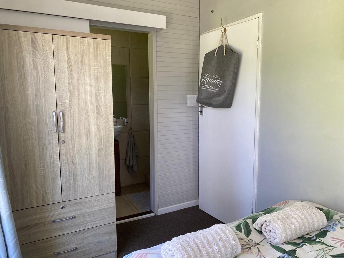 Ideal for business people who are looking for a peaceful spot to relax while in Somerset West or a couple getting away for the weekend on a budget. Close to Helderberg Nature reserve and Lourensford and Vergelegen Estates. The room has a coffee station with microwave and bar fridge. We also have a small mini portable 2 plate/oven for prepping simple dishes. Outside you can braai at the weber provided or just chill near your own private garden. Feeling energetic? Workout with our exercise equip.