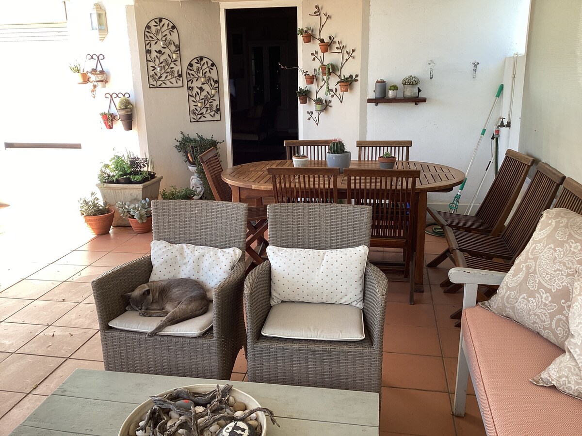 The spacious apartment is in a neat,well kept and secure double storey complex. The gardens are attractive and have large lawns. We are surrounded by beautiful mountain ranges. Our nature reserve is nearby for hiking and walking. The private Vergelegen hospital is a 4 minute drive away.
