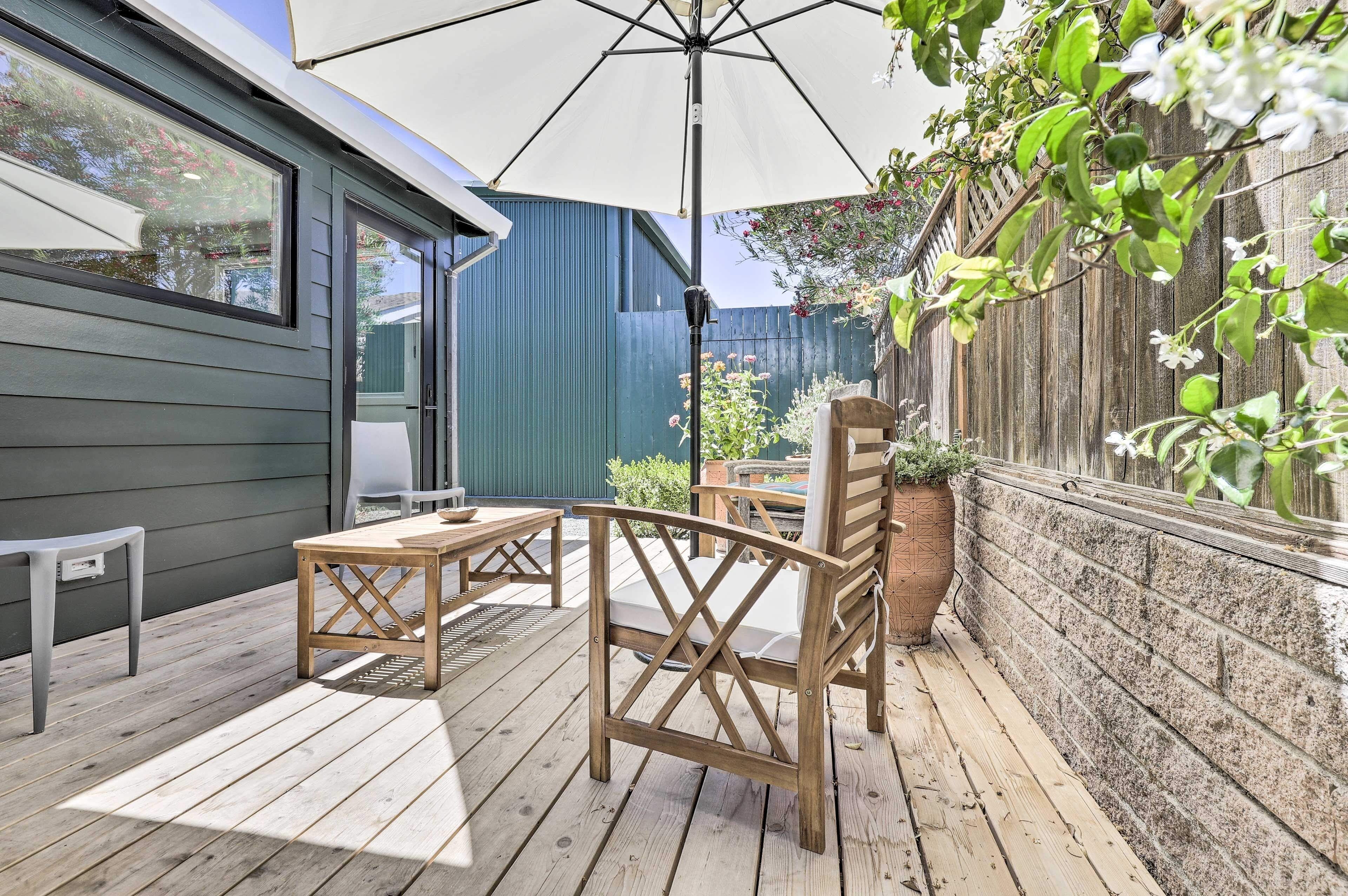 Wi-fi, Smart TV to log into your own app account, fully appointed kitchen, new quartz countertops with new stainless steel tub sink and new stainless steel appliances, central heating, refurbished gorgeous hardwood floors, covered porch to watch the sunset; secure, super clean. Guests will have access to the washer and dryer and outdoor eating area. The front and back yards have been professionally landscaped. The backyard includes a dining pergola with lighted ceiling fan, fountain, redwood trees, kitchen garden, and small vineyard.