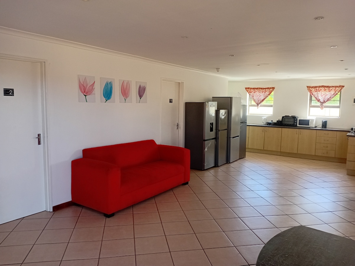 Student accommodation turns Holiday Home over the festive season to give travelers an affordable roof over their head. The room is completely private, the kitchen, bathrooms and lounge are shared. Also perfect for the lone traveler as it's a chance to mingle with others over the communal areas. Close to the beach 3km away. 2min from a shopping center. Every thing you need is within reach!