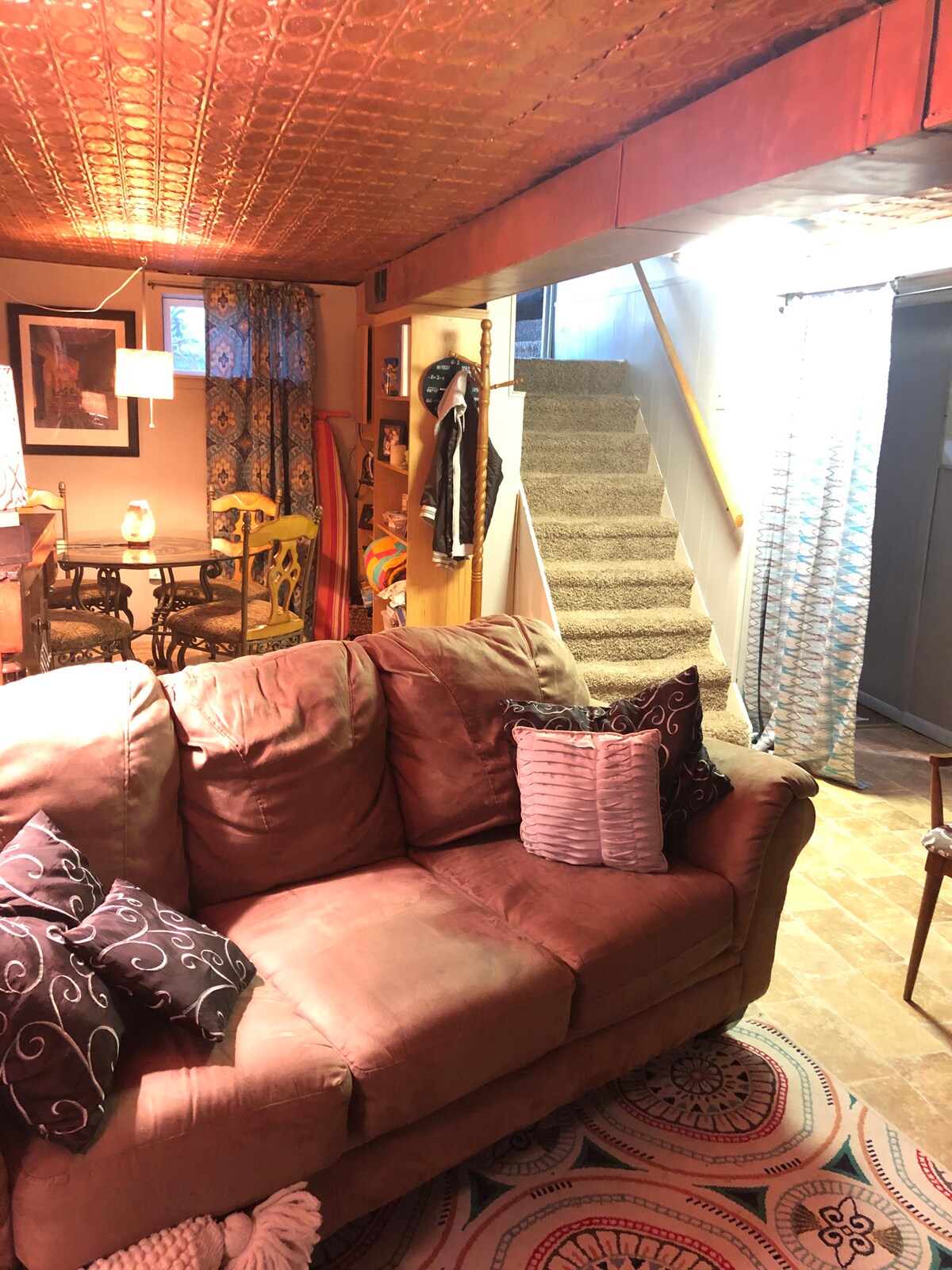 This is a large one bedroom located inside an older house that had been converted into a tri-plex. As you can see by the description we feel this may be one of the most unique places you will stay at! There is a couch in the living room and space for an air mattress (1 provided). There is shared heat throughout the building and space heaters in the unit to control the temperature to your liking. A window A/C unit and portable fan is available for cooling.