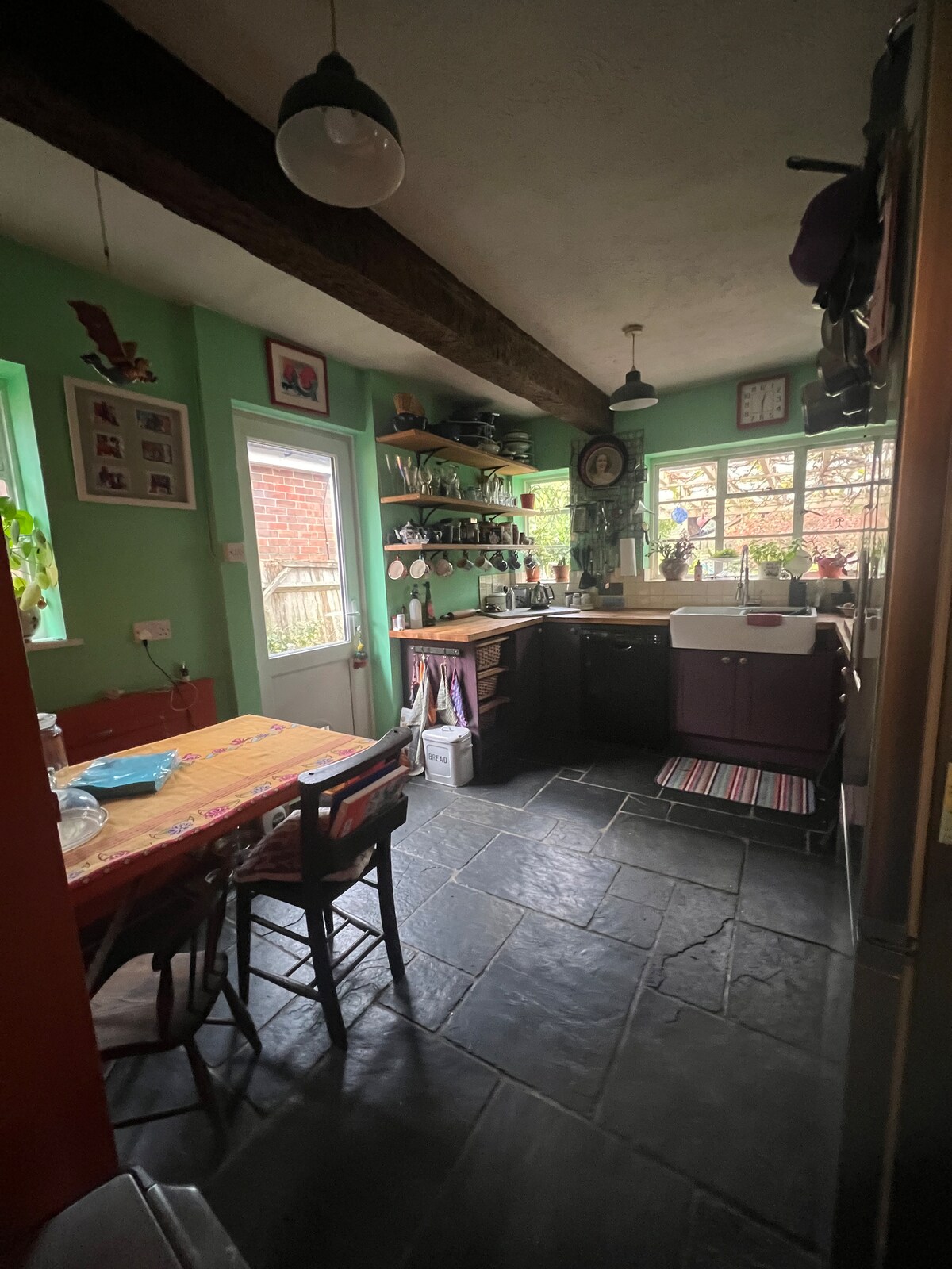 The house is a 1930’s rustic house with original features and wooden floor boards downstairs.