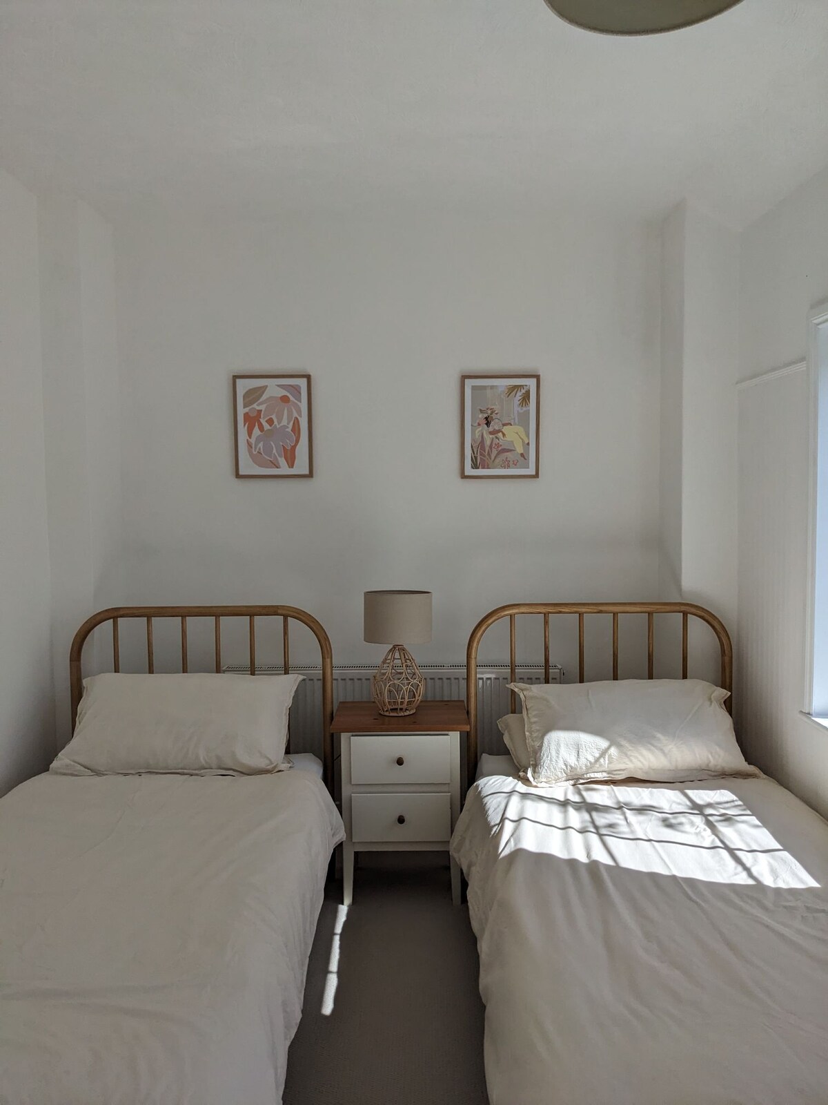 The apartment boasts two bedrooms, furnished with comfortable beds and quality linens, perfect for you to sink in after a day of exploring. Each bedroom features a comfortable double bed with king bedding for you to sink into after a long days sightseeing. 🤗
