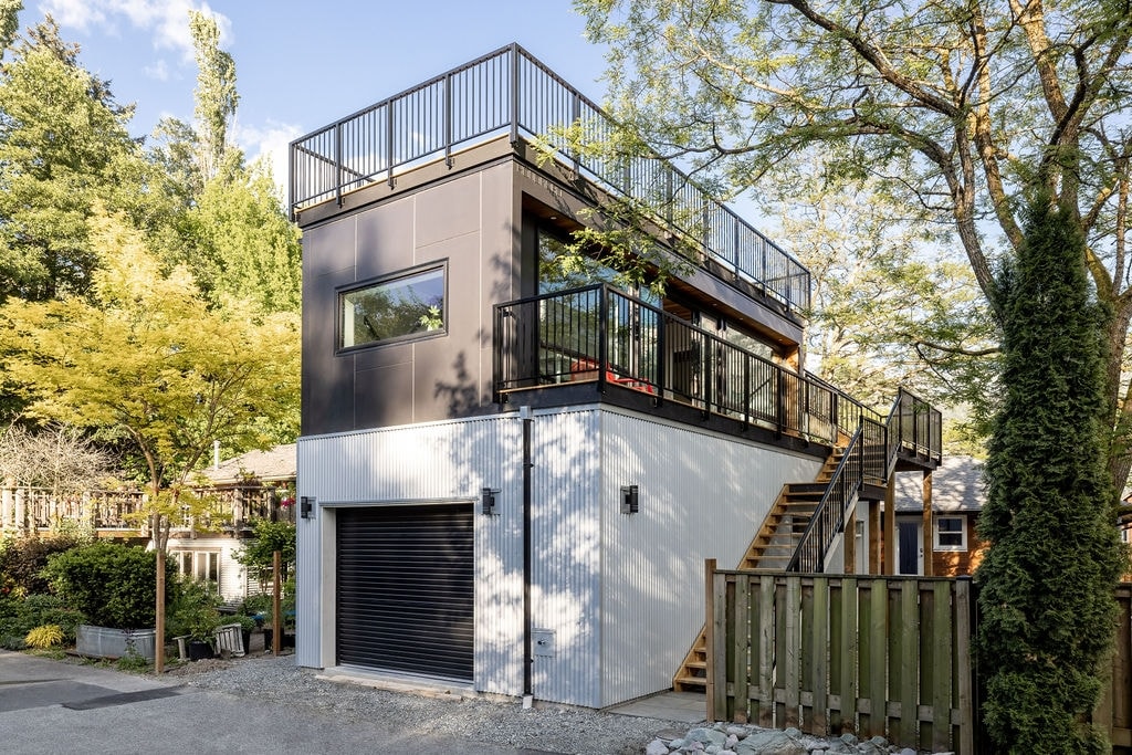 The unit has two entrances, at the back and side of the house, and also includes one full garage bay for storing recreational equipment or tools.