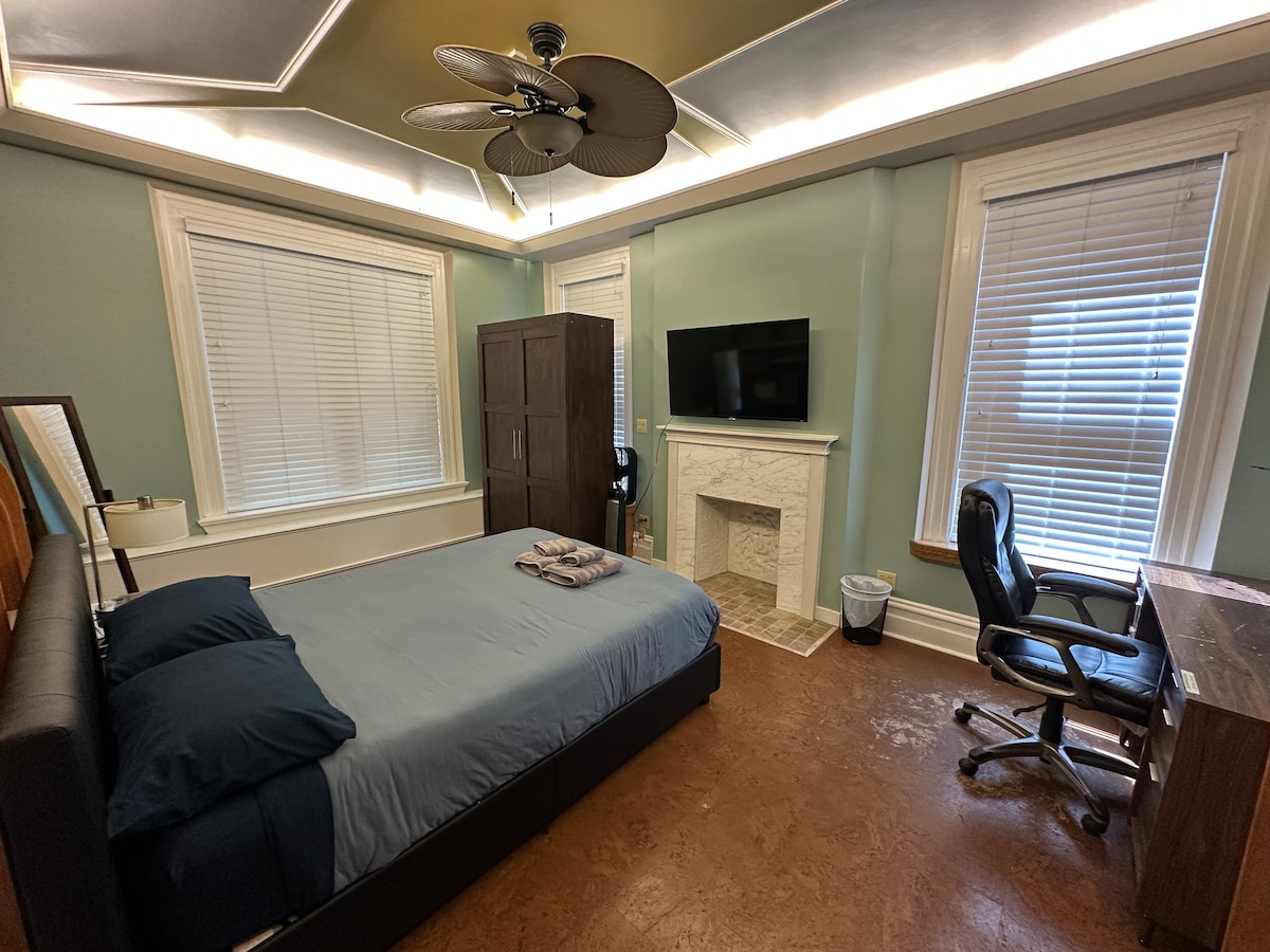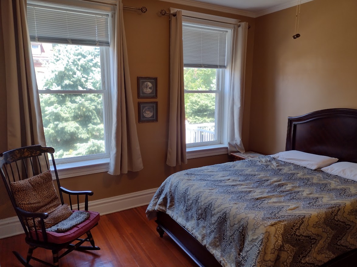A clean, quiet, spacious & comfortable private room with a brand new window AC on the 2nd floor of a big historic house by a park. Kitchen, bathroom, dinning room and living room are shared. Nice neighbors.