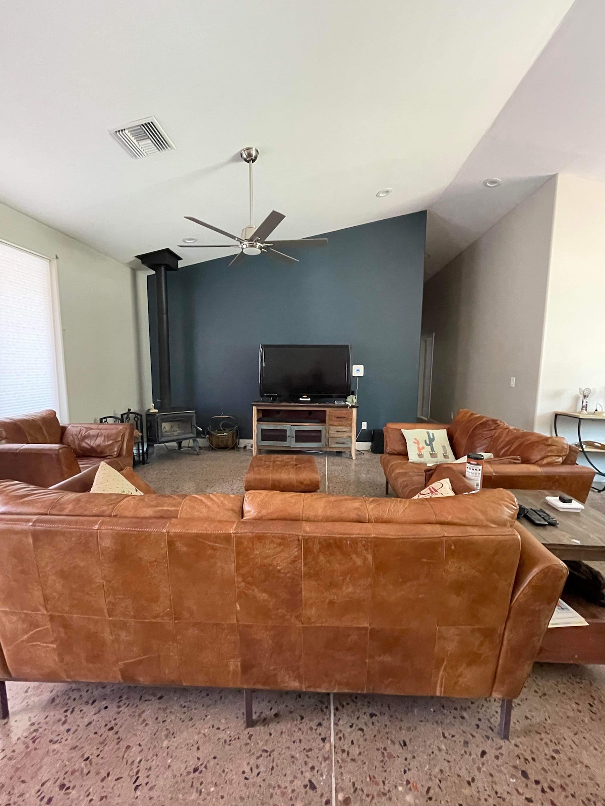 Air conditioning/heating, ceiling fans, open layout, smart TV (including Netflix, Amazon Prime and YouTube TV), surround sound, fireplace, 2 Alexa dots