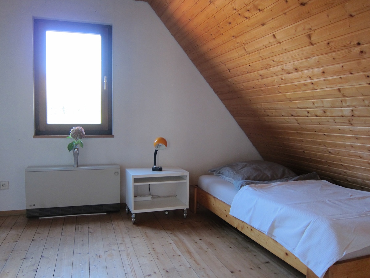 The room has its own access and is separate from the other living spaces. The bed is 140 x 200 cm. No traffic noise. Ample street parking.