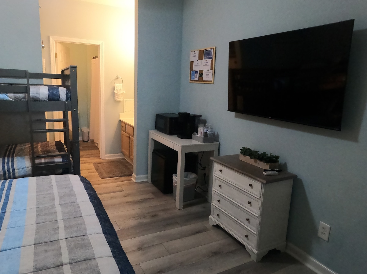 Enjoy a relaxing stay at our newly remodeled mini suite in Sea Trail Resort, just 3 minutes from Sunset Beach. With 2 queen beds, a kitchenette, private bathroom, and free parking, it's perfect for families, golfers, and pets. The resort offers access to golf courses, pools, and a jacuzzi (small fee applies). Plus, enjoy dining and drinks at the "55 Bistro Bar" and more within Sea Trail Resort. Book now for the perfect beach getaway!