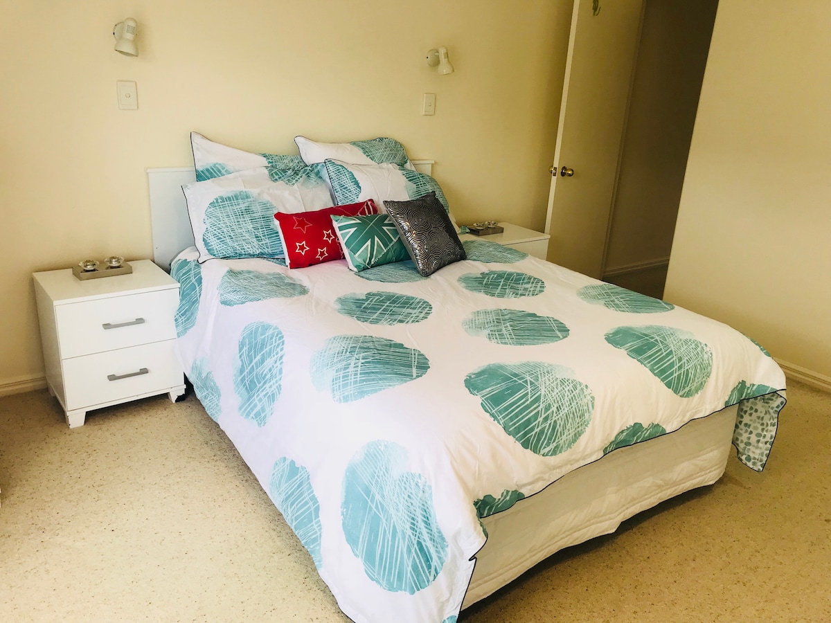 This bedroom has a queen bed, the other room is smaller also with a queen bed. Both rooms can be booked if required. My place is close to restaurants and dining, family-friendly activities, the beach, nightlife, and public transport. You’ll love my place because of the neighborhood and the comfy bed. My place is good for couples, solo adventurers, business travelers, and families. (with kids 12yrs and over). Entry is straight of the front door so can be very private if you wish.