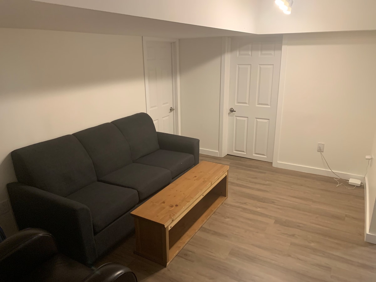 Fully equipped with everything needed for a comfortable stay whether it be long or short. This basement apartment is nestled in a quiet neighbourhood close to parks and supplied with many complimentary amenities including on site laundry facilities and kitchen essentials.