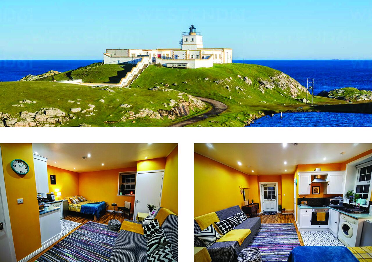 Enjoy stunning uninterrupted sea views while sipping on your morning coffee from this cosy studio apartment. The lighthouse is out of use, but is surrounded by dramatic coastal scenery that provides a wonderful setting for walking, wildlife watching and Northern light spotting. Situated in a tranquil rural setting 4 miles off the NC500, this comfortable retreat is the ideal place to reconnect with yourselves and nature.
