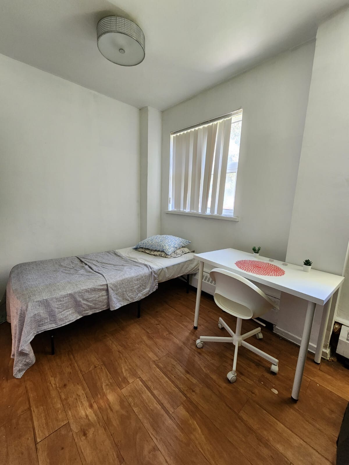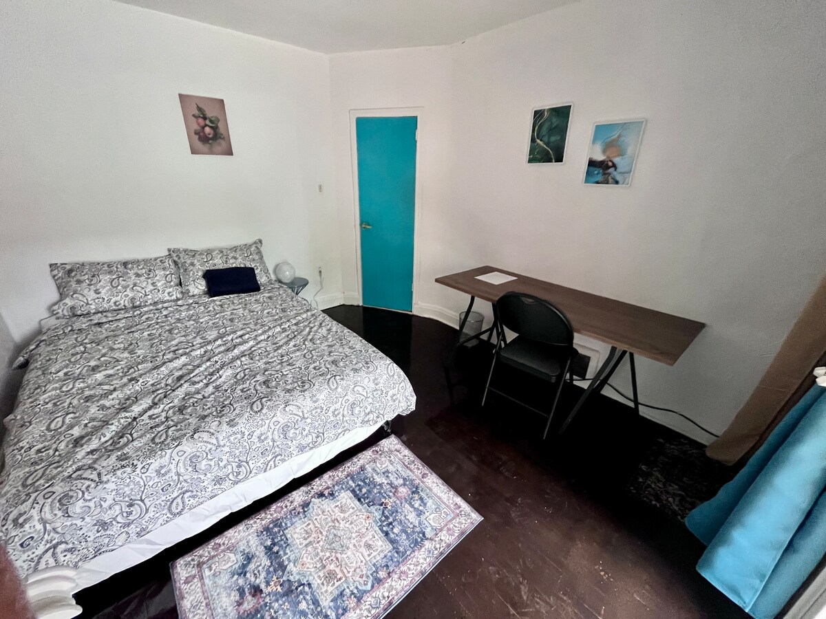 This private room is on the main floor and includes a double (full size) bed, a desk and a closet. There are 3 other rooms on the main floor and 1 bathroom. There are additional 2 bathrooms that can be used, one on the second floor and another in the basement.