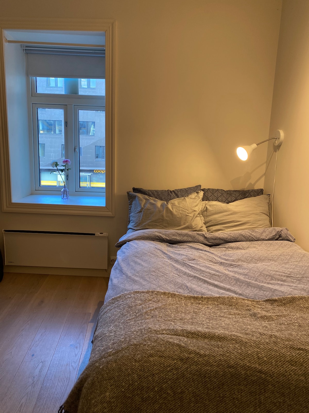Single-family room in perfect location, 5 min walk from city centre Here you have easy access to absolutely everything. Cozy room with kettle and microwave and refrigerator available (Note! No cooking facilities). Light breakfast available. Bed 150cm. Extra mattress for extra guest available for a small amount