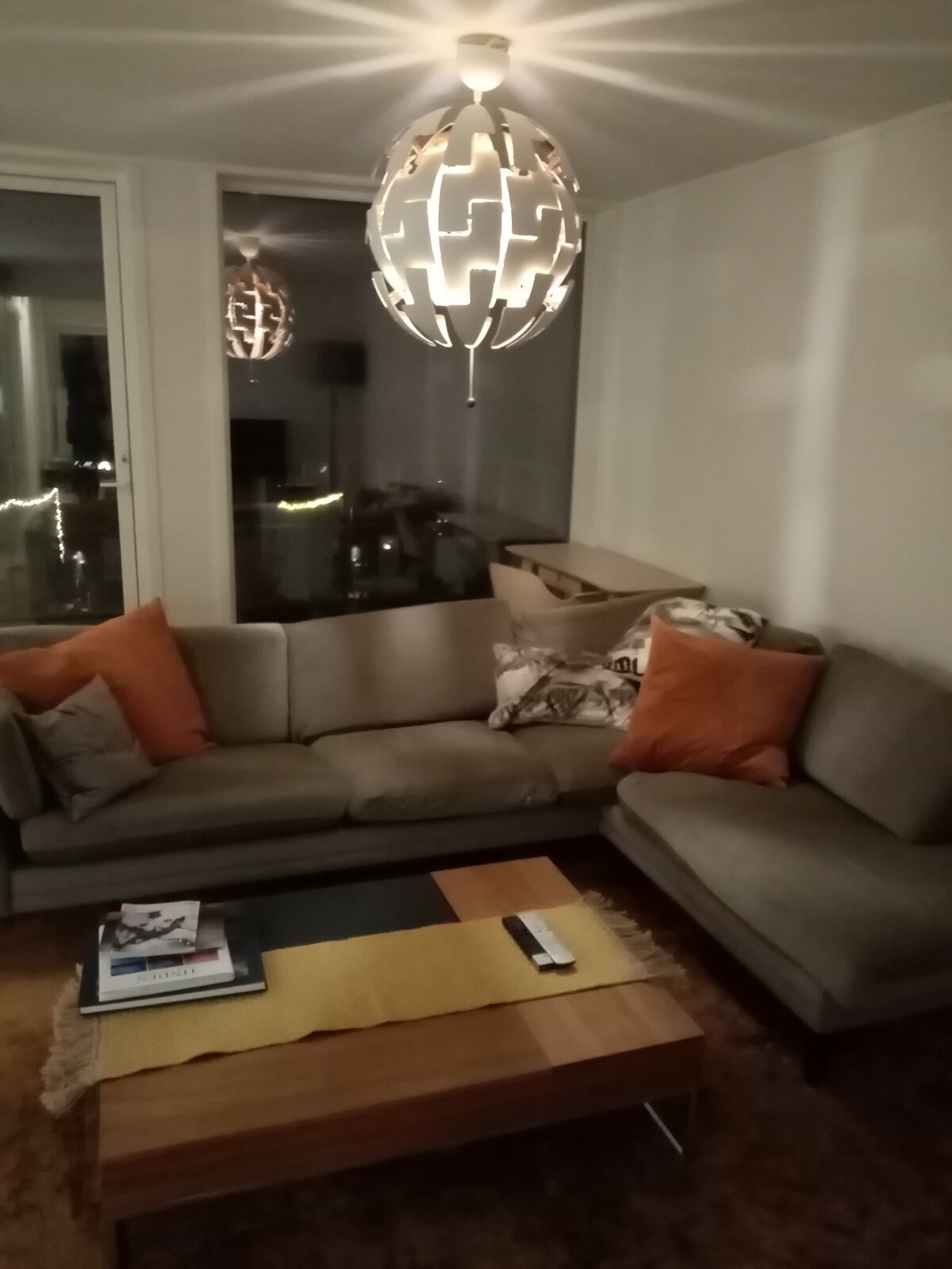 Bedroom and bathroom in a nice, bright apartment. Access to kitchen, shared with the family. You are welcome to have food and relax there. We will adapt so that you have privacy even though it is shared. Beautiful view, right below the forrest and the mountain. Perfect for a couple or a single person who want to go cross-country skiing or randonee, and not too far from the city. Sometimes the northern light can be seen from our balcony, or have a short walk up the hill for a even better view.