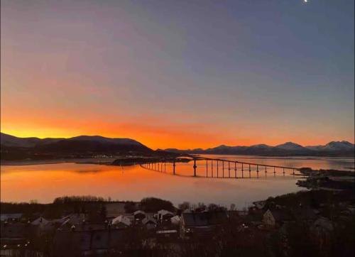 A nice, modern appartment with two balconies that gives you a beautiful view over the Mountains surroundings Tromsø from Tromsdalstind in the North-East to southern parts of Kvaløya and Malangen, and the nice colors when the sun is under the horizon. The balcony in the East side gives you a good chance of watching the northern light. Walk a steep Hill of around 60 meters behind the house, and you will have an amazing view.