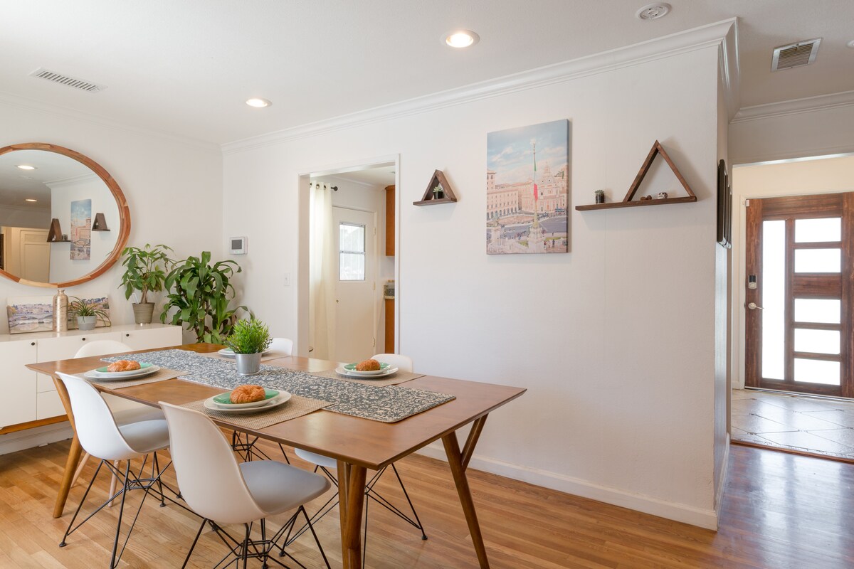 This charming mid century home with modern fixtures and style. The landscaping breathes life. You’ll feel the serene and calming energy as you walk through the garden. Feel free to enjoy the avocados or citrus our trees produce. Brick fireplace, new kitchen appliances, dedicated laundry room, the dedicated workspace in the kitchen are just a few unique upgrades this home has. Free street parking as well.