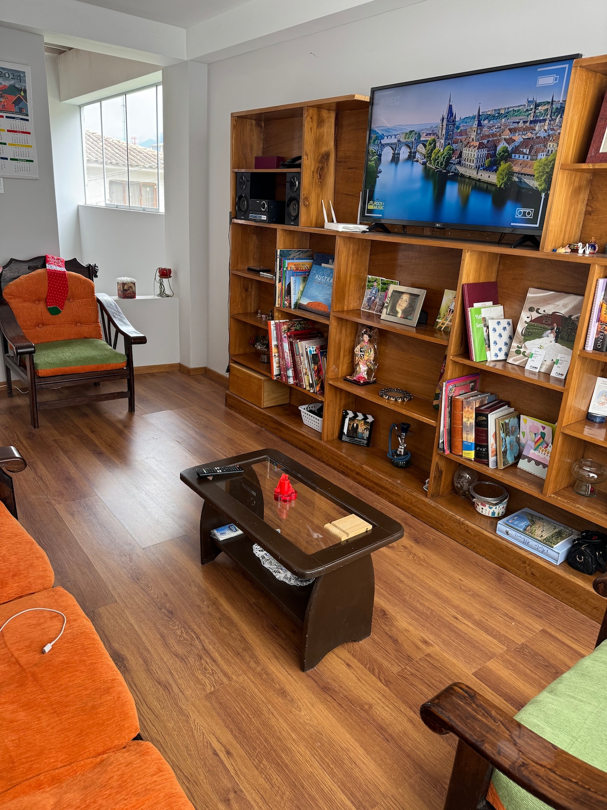 Spacious room in an apartment, decorated with Andean and modern touches, with a stunning mountain view.