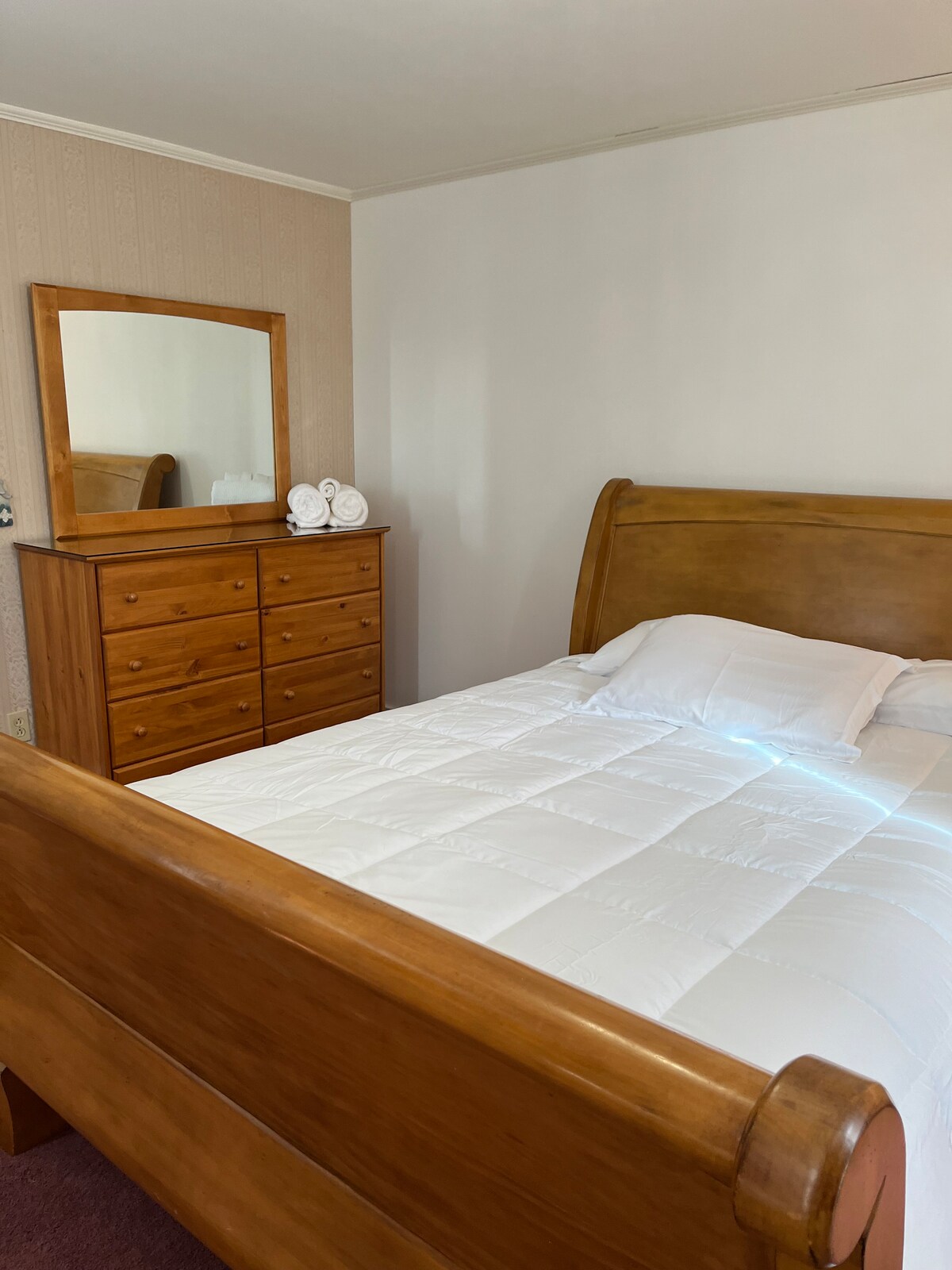 Bedroom: Queen Bed with super soft bedding and extra pillows.