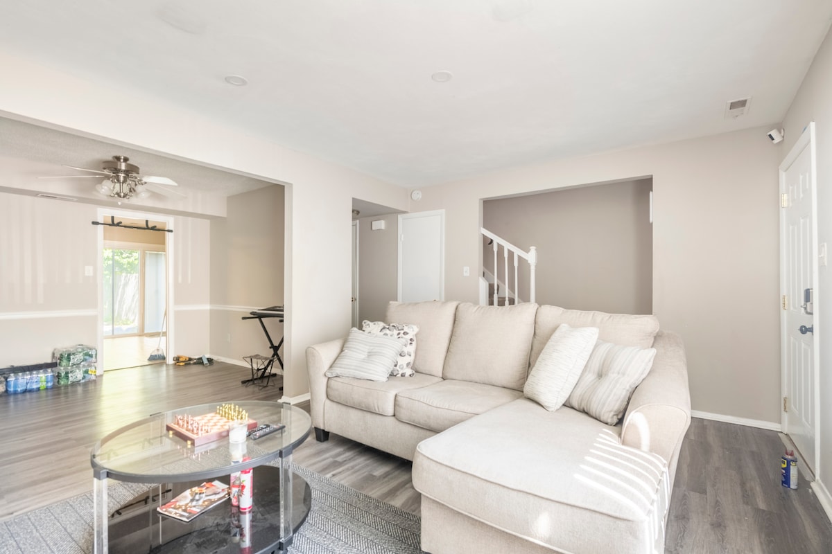 The guest room boasts a queen size bed, smart tv, wifi, lap top station, mini fridge/ freezer and a large walk in closet! Full bath room upstairs and a half bath down stairs for guests to use along with the kitchen, living room and dining room.